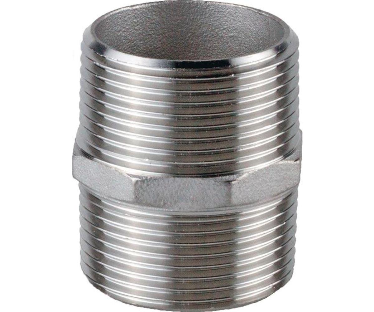 6- bzw. 8-kt. Doppelnippel · Gewinde EN 10226-1 · ISO 7-1 · AISI 316/1.4408/V4A · Präzisionsfeinwachsguss · Druckempfehlung max. 20 bar/bei +20 °C