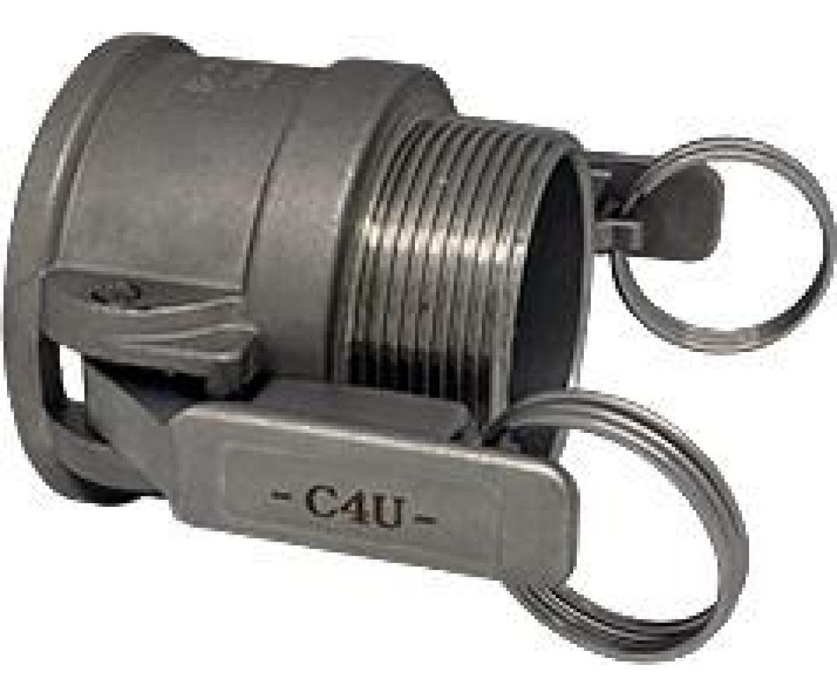 Mutterteil mit Aussengewinde und beidseitigem Sicherungshebel um unbeabsichtigtes Öffnen der Kupplung zu vermeiden. Vielfach eingesetzt bei kritischen Anwendungen in Chemie und Petrochemie um die Sicherheit der Mitarbeiter und der Umgebung zu erhöhen