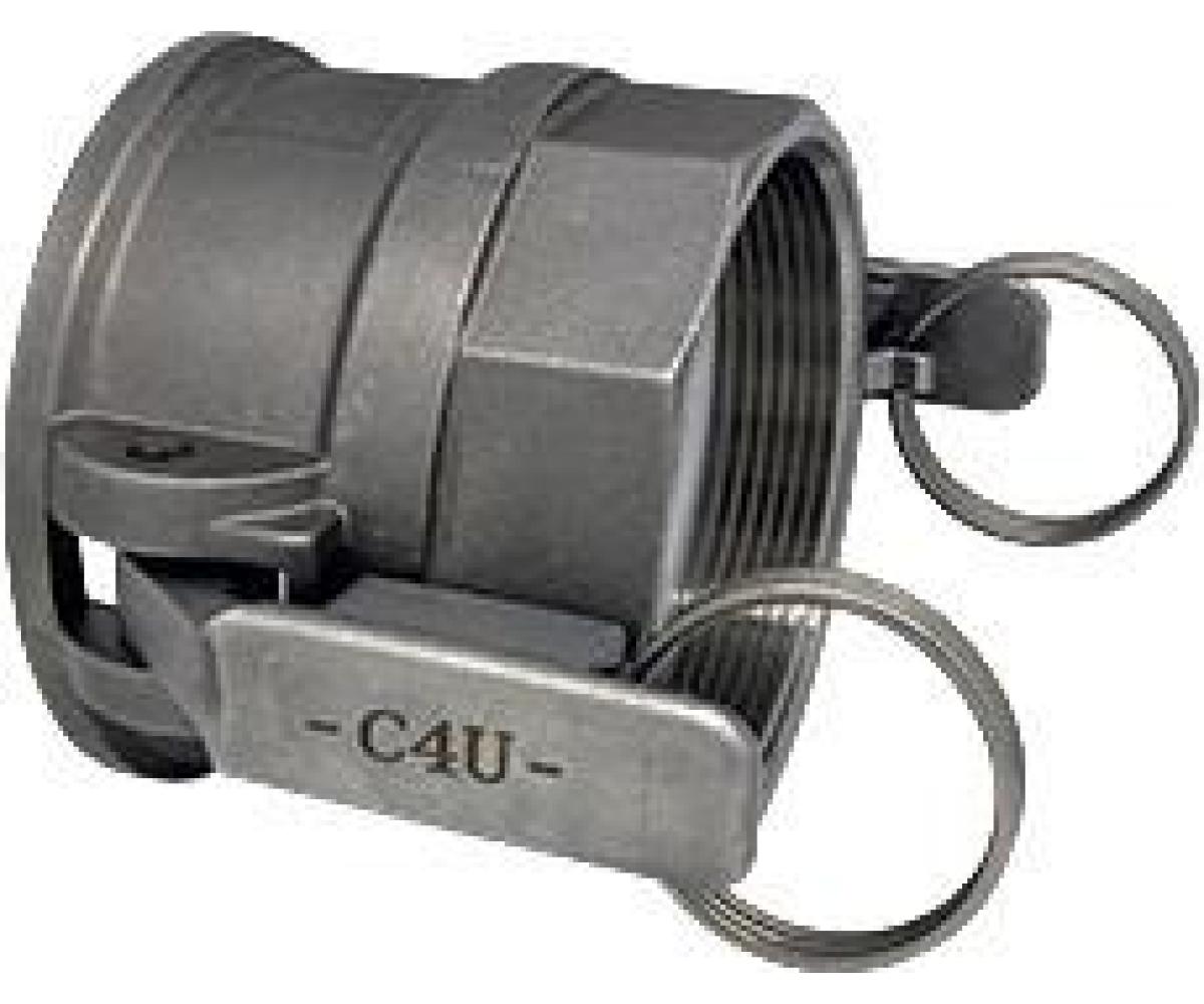 Mutterteil mit Innengewinde und beidseitigem Sicherungshebel um unbeabsichtigtes Öffnen der Kupplung zu vermeiden. Vielfach eingesetzt bei kritischen Anwendungen in Chemie und Petrochemie um die Sicherheit der Mitarbeiter und der Umgebung zu erhöhen.