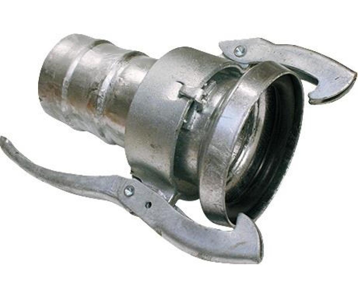 Mutterteil für Schelleneinband · Typ C 78 mit Schlauchstutzen · Hebelverschlussring · Becher und Dichtung. Mit fest montiertem Hebel.
