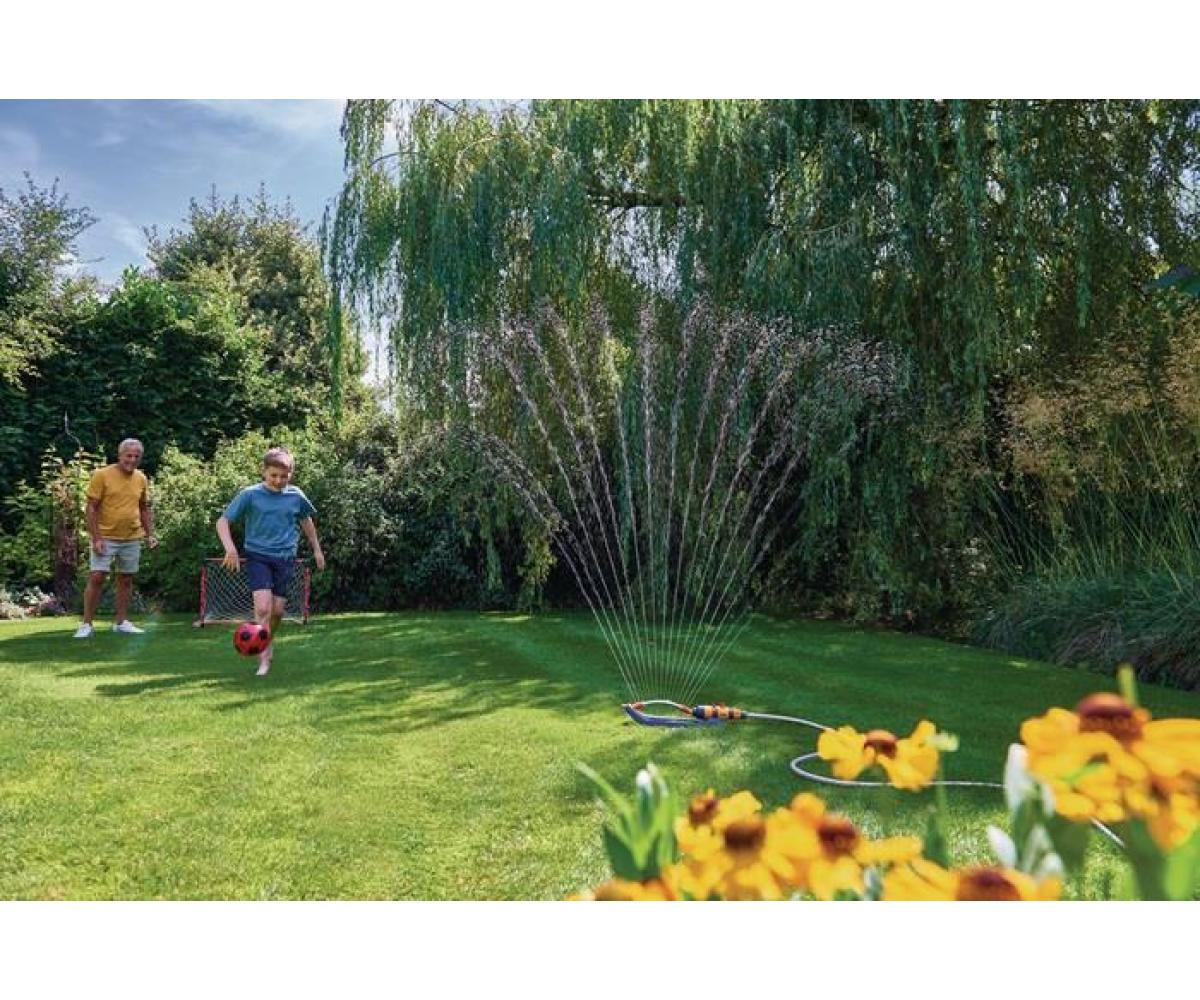 Viereckregner · ausgestattet mit einer 3D-Steuerung, mit der sich dieser Regner exakt an die Form und Größe jedes Gartens anpassen lässt · Sprührichtung leicht einstellbar · 12-16 einsetzbare Düsen für gezielte und sparsame Bewässerung