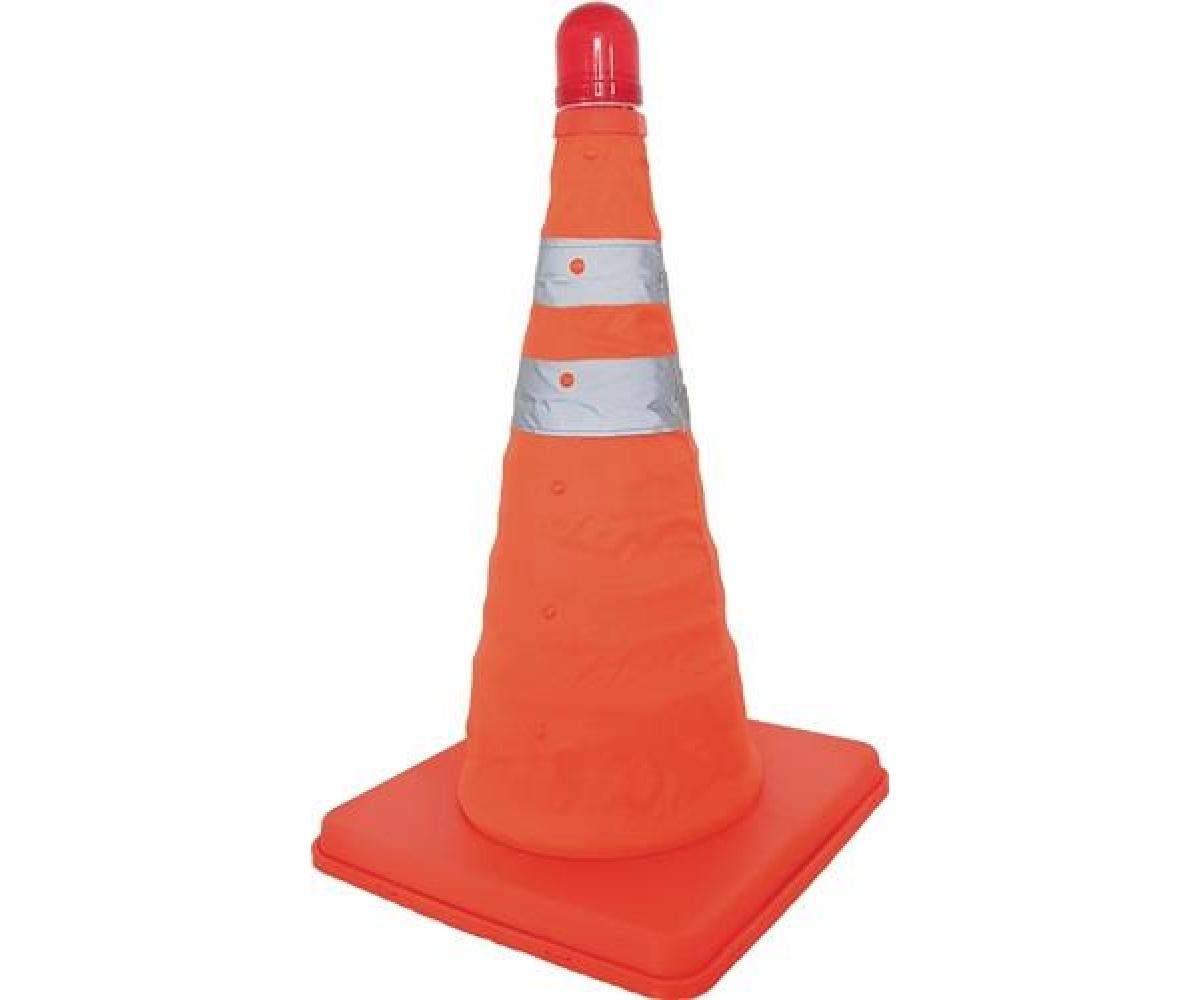 zusammenfaltbar · Höhe 450 mm · mit Reflektorband und blinkender LED · Stromversorgung 2x AAA Batterien · nach EN 20471 · mit Aufbewahrungstasche