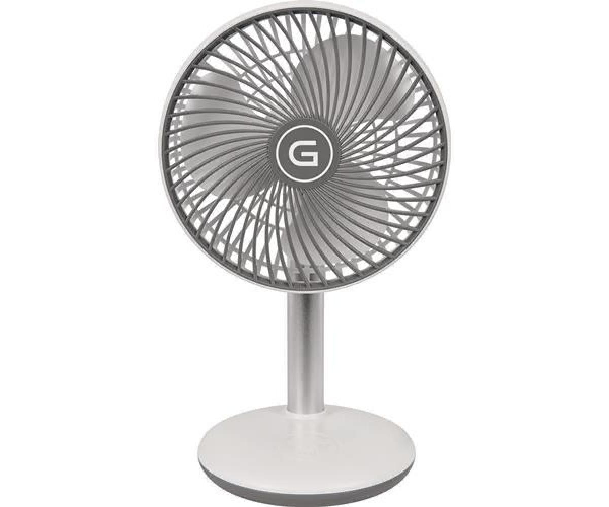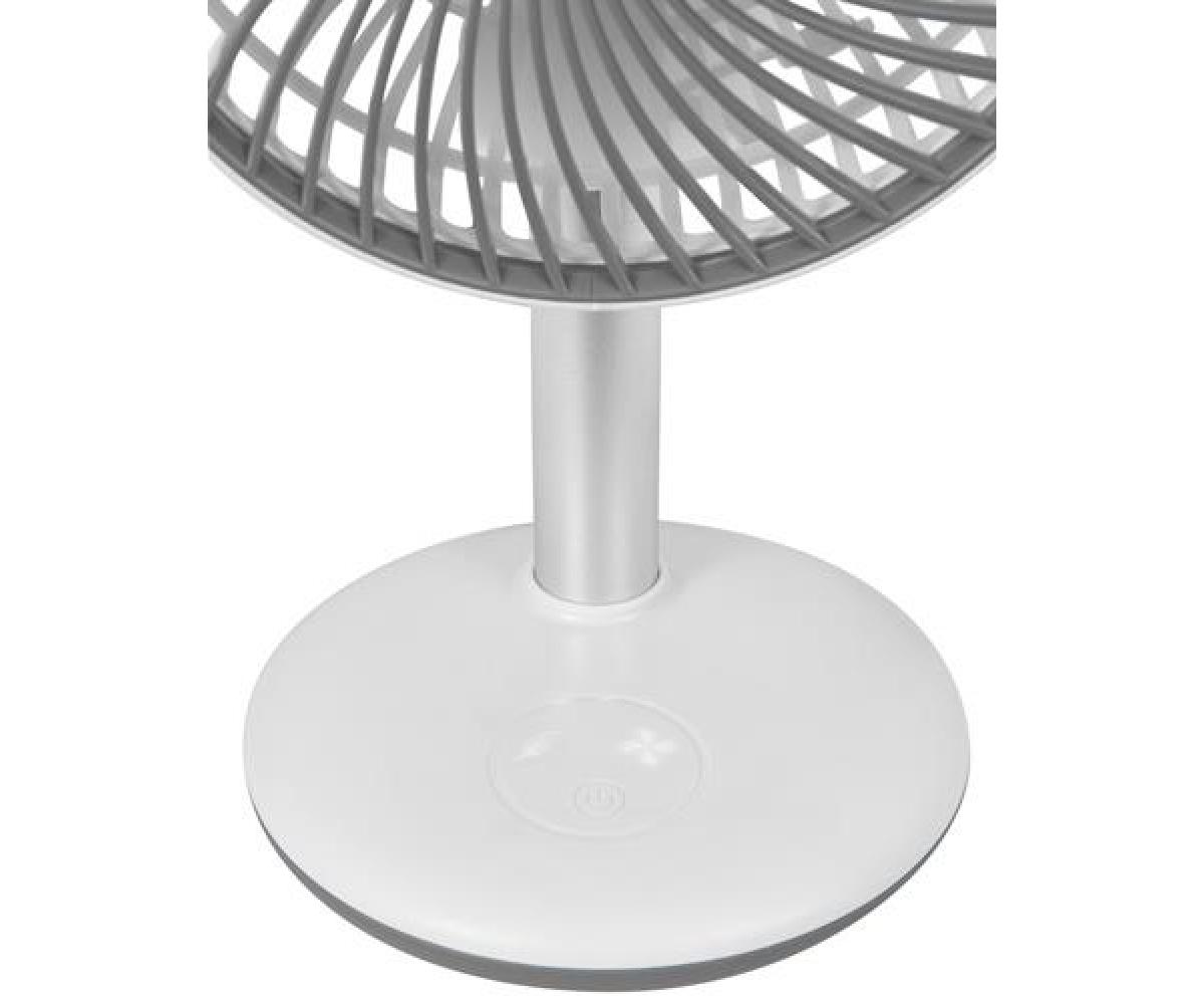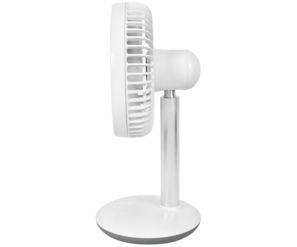 mit 4.000 mAh Lithium-Ionen Akku · 3 Flügelblätter · 4 Geschwindigkeitsstufen · Betriebsdauer(bis zu 12h Laufzeit) · integrierte Ladekontrollleuchte · mit Soft-Touch Bedienung · 2 Ventilations-Modi: pulsierend oder gleichmäßiger Luftstrom · verstellbarer Neigungswinkel · Gestell aus Aluminium Rohr