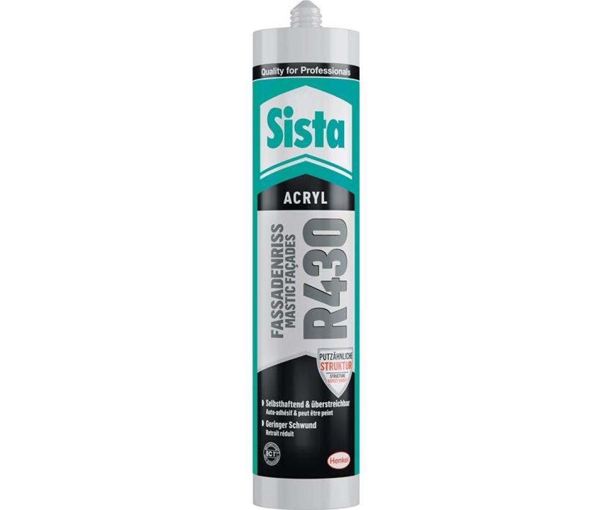 Weitere technische Eigenschaften · Inhalt: 300ml · Verarbeitungstemperatur: +5 bis +40°C · Temperaturbeständigkeit: -20 bis +70°C · Gebinde: Kartusche · Acryl R430 Fassadenriss · 300 ml altweiß Kartusche · SISTA ·