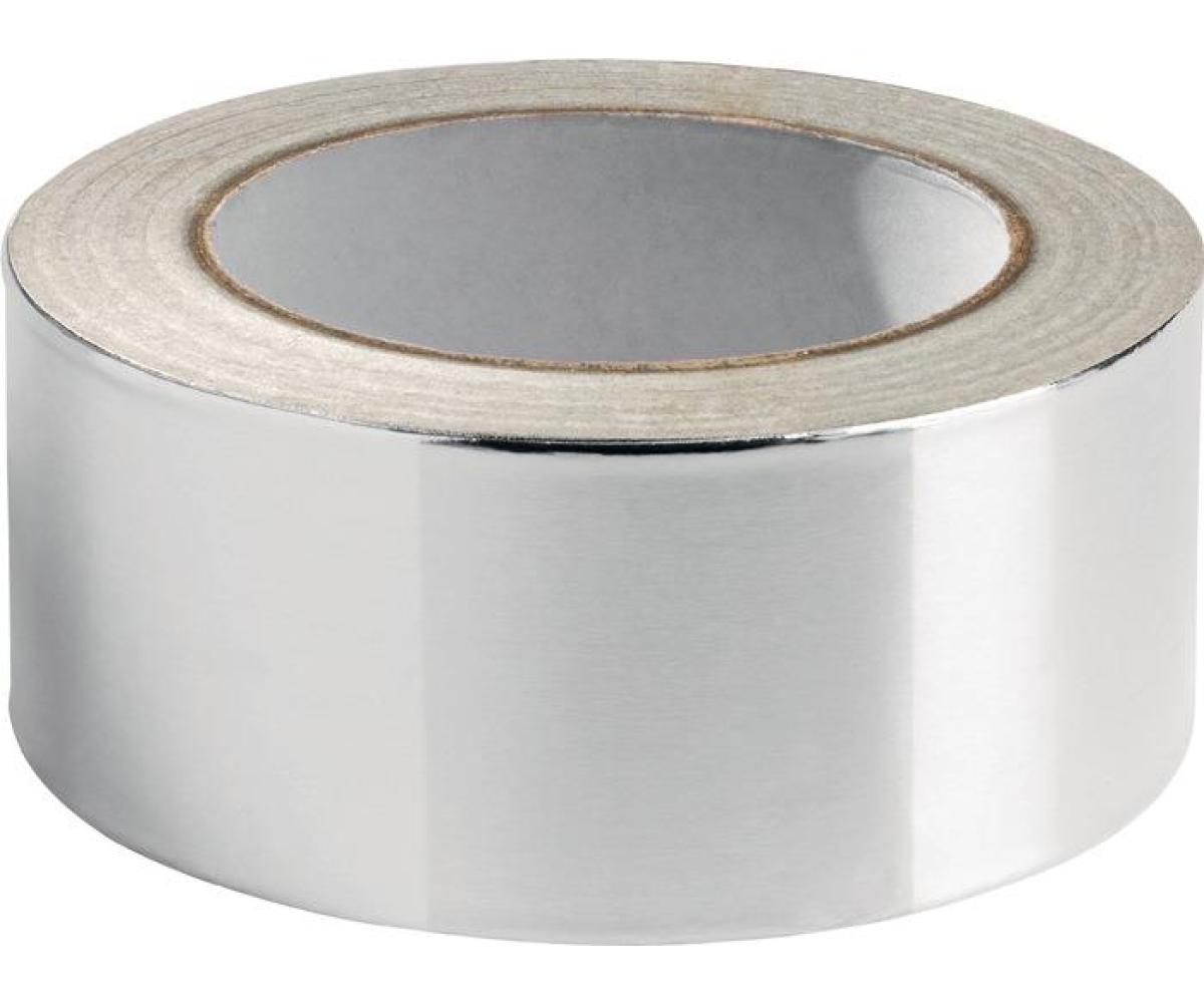 reine Aluminium-Folie · Foliendicke 30µ · Gesamtdicke 70µ · selbstklebend · einseitig beschichtet mit einem hitze- und alterungsbeständigen, wassergelösten Acrylatkleber · schwer entflammbar · einsetzbar als feste Verbindung von Isoliermaterial, Dampfsperre für Stoßfugen und als Reparatur- und Abdeckband