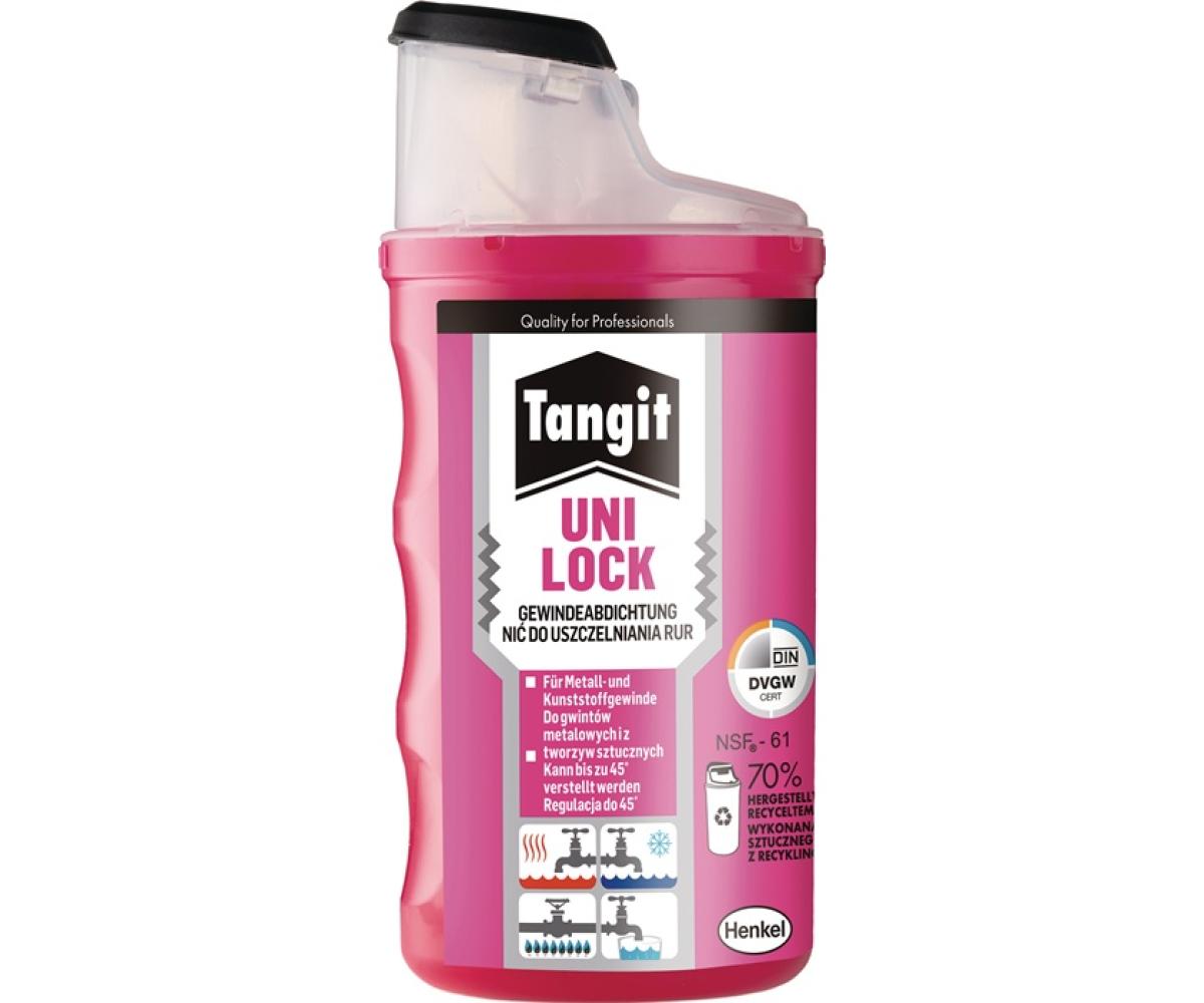 Weitere technische Eigenschaften · Gebinde: Spenderdose · Farbe: weiß · Gewindedichtfaden · UNI-LOCK 80m Spenderdose · TANGIT ·