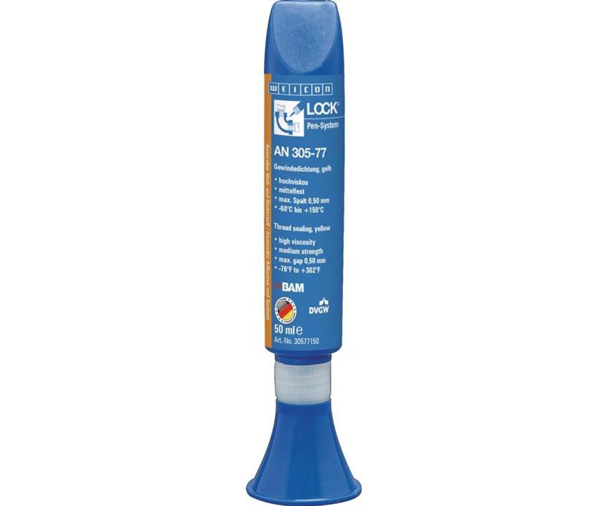 Weitere technische Eigenschaften · Farbe: gelb · Funktionsfest: 1-3 Stunden · Handfest: 15-30min · Temperaturbeständigkeit: -60 bis +150 °C · Rohrgewindedichtung · WEICONLOCK® AN 305-77 · mf.hv.gelb 50 ml Pen ·