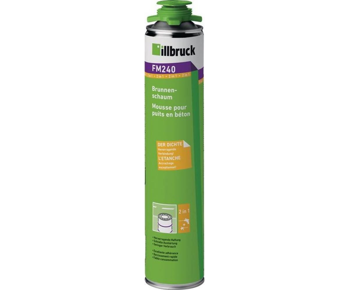 Weitere technische Eigenschaften · Haltbarkeit: 12 Monate · Farbe: grün · Chemische Basis: Polyurethan · Verarbeitungstemperatur: +5 bis +35°C · Temperaturbereich: -40 bis +90°C · Gebinde: Dose · 1K-Brunnenschaum FM240 · 750ml B2 grün · o.Einw.-Handsch.Dose ·