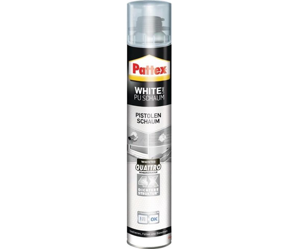 1-komponenten PU-Pistolenschaum mit WhiteTeq Quattro Technologie: 4x mehr Zellen / Raumeinheit, 20% bessere Wärmedämmung 0,032 W/mK, 50% bessere Schalldämmung 63 dB, 10x höhere UV-Stabilität (im Vergleich zu herkömmlichen PU-Schäumen) · reinweiße Schaumqualität · feine, homogene Zellstruktur · zum Füllen und Dämmen von Fensterrahmen · Isolieren von Türzargen · Verfüllen und Isolieren von Mauerdurchbrüchen und Hohlräumen, z.B. Rohrdurchführungen, Rollladenkästen etc. · Ausschäumen von Hohlräumen und Fugen in Wärmedämmsystemen · Baustoffklasse B2 nach DIN 4102