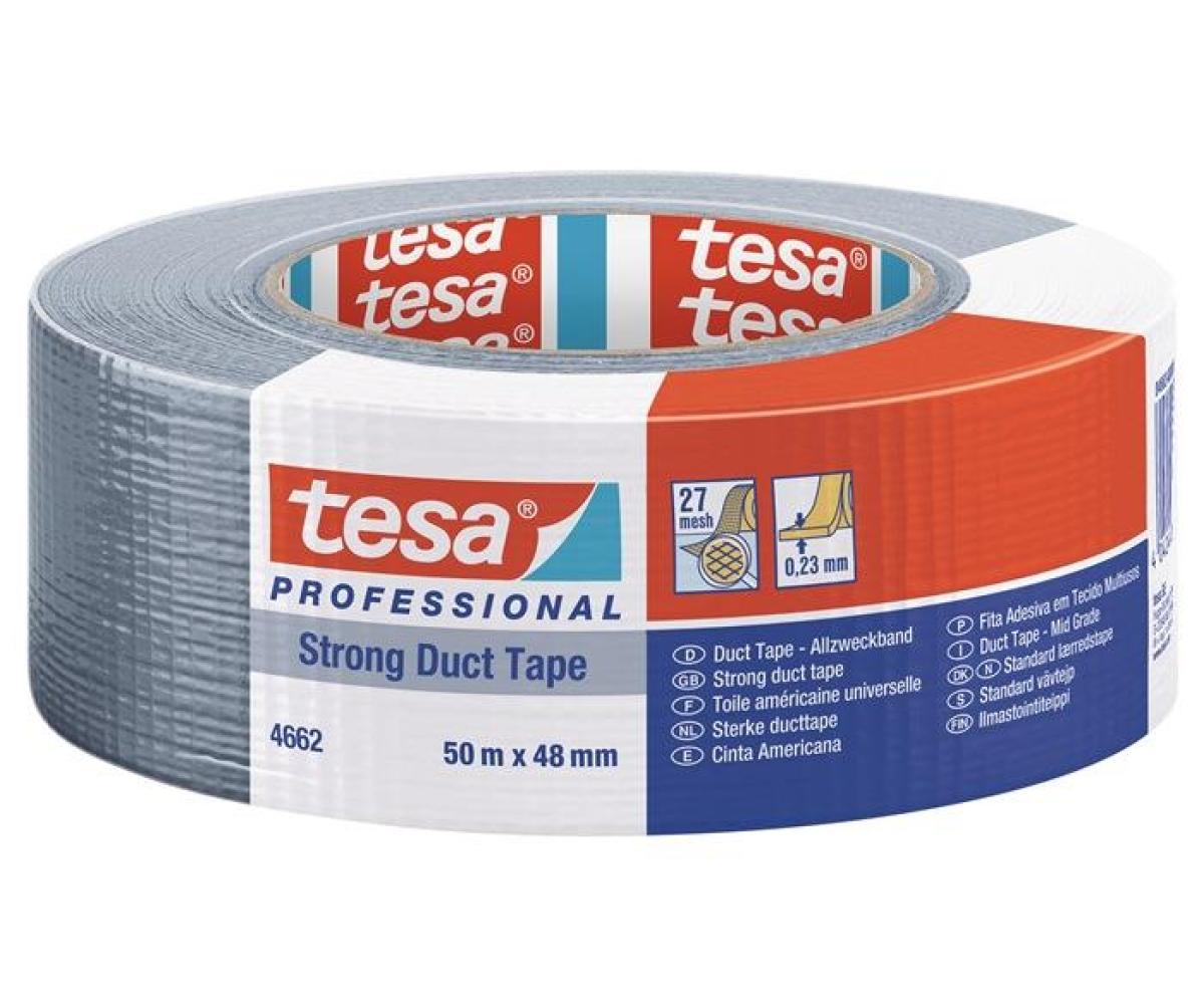 Weitere technische Eigenschaften · Trägerart: PE-beschichtetes Gewebe · Gesamtdicke: 0,23mm · Reißkraft: 30N/cm · Klebstoff: Naturkautschukkleber · Modell: 4662 · Klebkraft: 4,4N/cm · Gewebeband Allzweck duct · tape 4662 mattsilber · L.50m B.48mm Rl.TESA ·