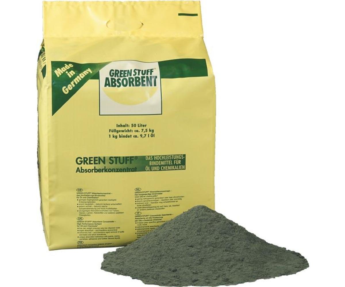 Weitere technische Eigenschaften · Material: hydrophiles Phenolharz · Saugleistung max.: 8,4 kg/1 kg · Gebinde: Sack · Absorberkonzentrat Green · Stuff® Inh.50l RAW ·