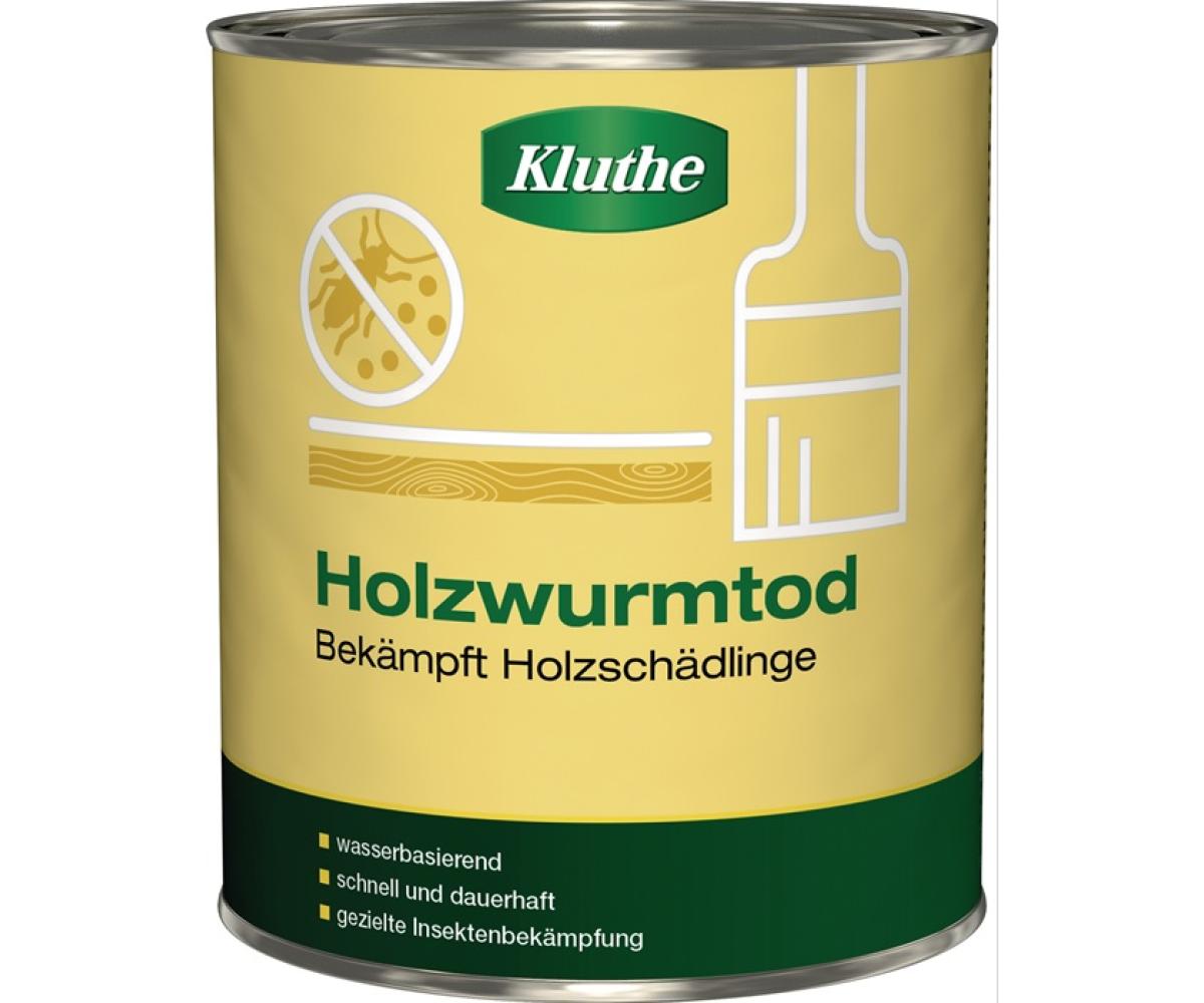 Weitere technische Eigenschaften · Farbe: farblos · Holzschutzmittel · Holzwurmtod farblos 0,75l · Dose KLUTHE ·