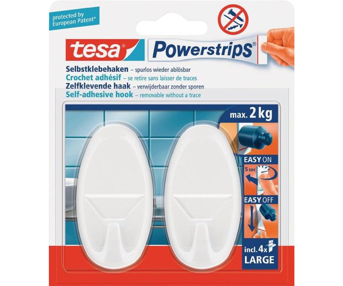 Weitere technische Eigenschaften · Inhalt: 2 Haken/4 Strips · Modell: 58013 · Deko Hak.Powerstrips® · Hak.LARGE 58013 Gr.L · (70x37 mm) ov.weiß ·