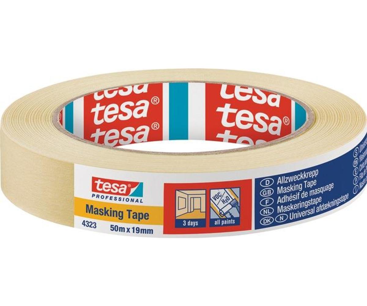Weitere technische Eigenschaften · Farbe: hellbeige · Gesamtdicke: 0,13mm · Reißkraft: 34N/cm · Klebkraft: 3N/cm · Kreppband 4323 leicht · gekreppt hellbeige L.50m · B.19mm Rl.TESA ·