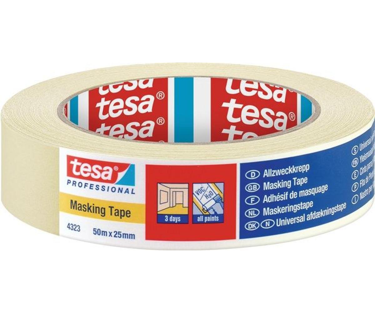 Weitere technische Eigenschaften · Farbe: hellbeige · Gesamtdicke: 0,13mm · Reißkraft: 34N/cm · Klebkraft: 3N/cm · Kreppband 4323 leicht · gekreppt hellbeige L.50m · B.25mm Rl.TESA ·
