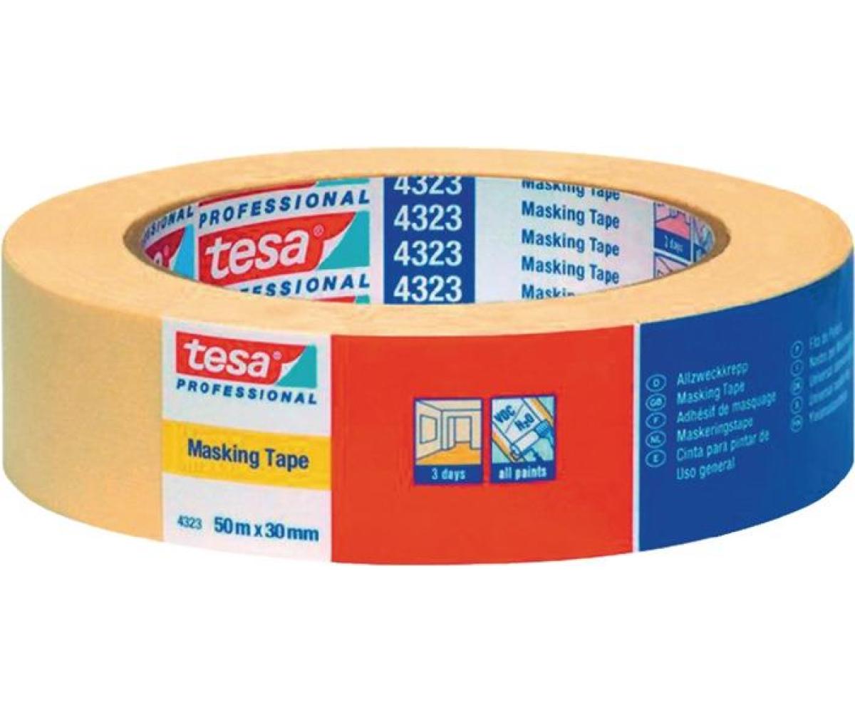 Weitere technische Eigenschaften · Farbe: hellbeige · Gesamtdicke: 0,13mm · Reißkraft: 34N/cm · Klebkraft: 3N/cm · Kreppband 4323 leicht · gekreppt hellbeige L.50m · B.30mm Rl.TESA ·