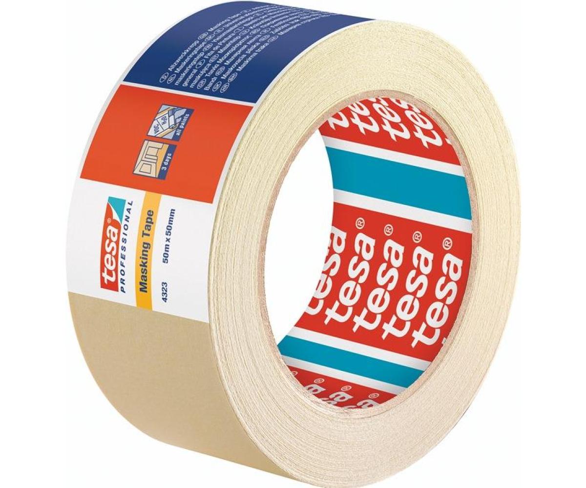 Weitere technische Eigenschaften · Farbe: hellbeige · Gesamtdicke: 0,13mm · Reißkraft: 34N/cm · Klebkraft: 3N/cm · Kreppband 4323 leicht · gekreppt hellbeige L.50m · B.50mm Rl.TESA ·