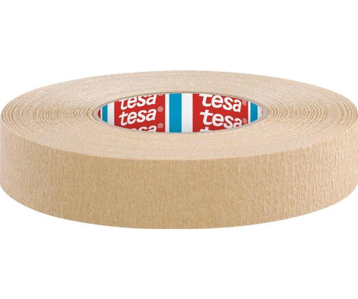 für eine sehr gute Kurvenverklebung · stark gekrepptes Papierklebeband · mit hoher Klebkraft auch auf rauen Untergründen · anschmiegsam · gut geeignet für dreidimensionale Untergründe · Klebmasse: Naturkautschuk · Gesamtdicke: 0,375 mm · Klebkraft: 4,5 N/cm · Reißkraft: 28 N/cm · Reißdehnung: 58 %