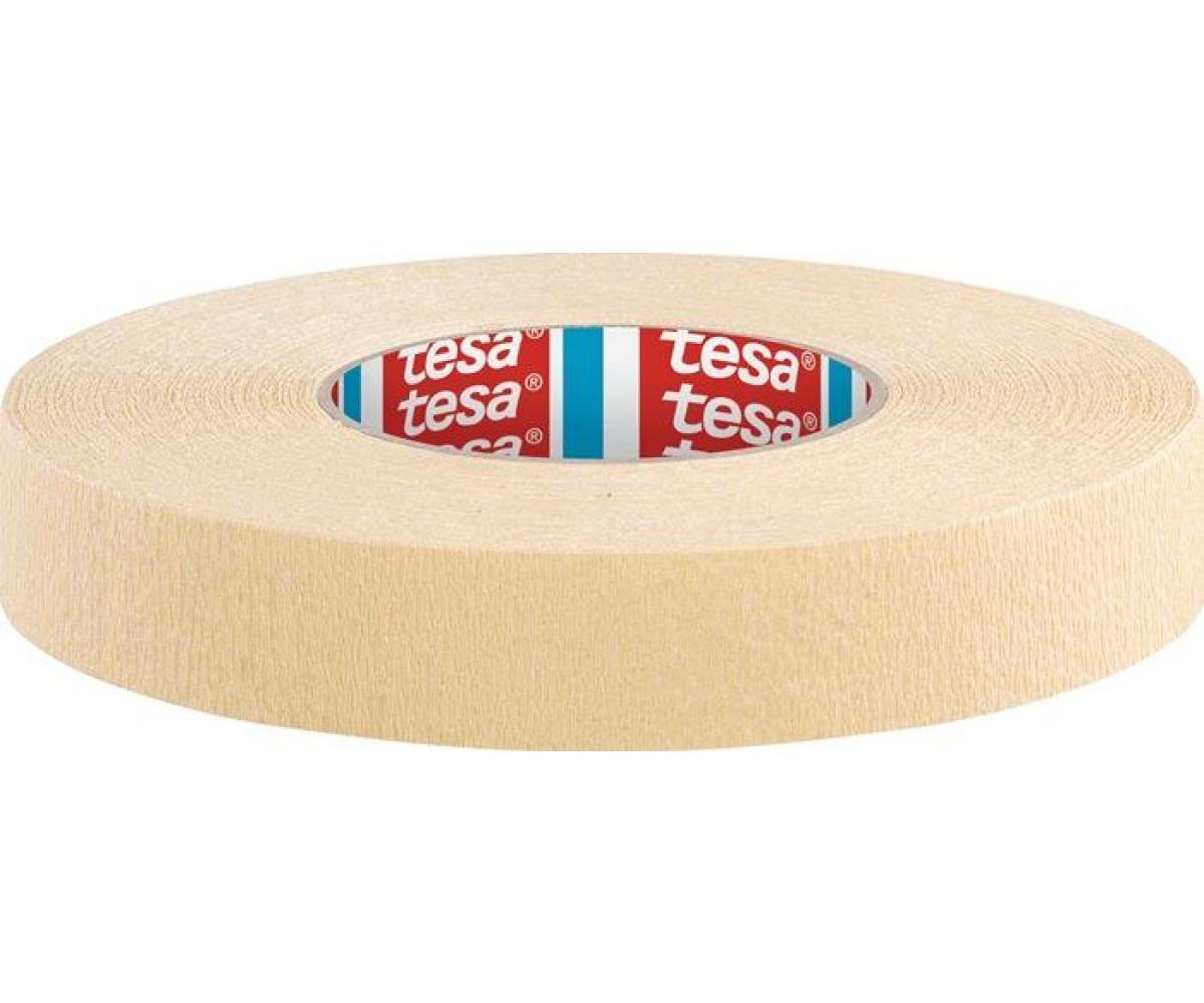 stark gekrepptes Universal-Papierabdeckband · sehr hohe Klebkraft · außerordentlich hohe Dehnungsreserve des schmiegsamen Trägers ermöglicht selbst in Kurven mit kleinen Radien, auf rauen Untergründen oder bei schwierigen Formen eine einwandfreie, fest haftende Verklebung
