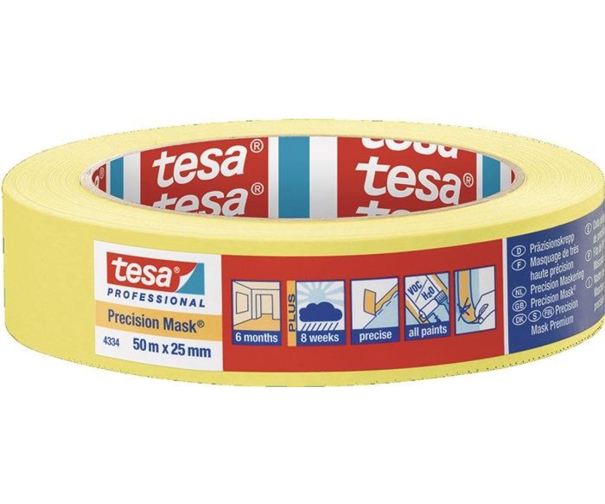 Weitere technische Eigenschaften · Farbe: gelb · Gesamtdicke: 0,09mm · Reißkraft: 30N/cm · Klebkraft: 1,85N/cm · Präzisionskrepp 4334 · glatt gelb L.50m B.25mm · Rl.TESA ·