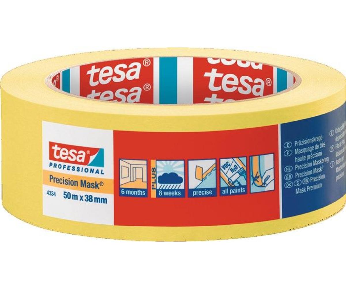 Weitere technische Eigenschaften · Farbe: gelb · Gesamtdicke: 0,09mm · Reißkraft: 30N/cm · Klebkraft: 1,85N/cm · Präzisionskrepp 4334 · glatt gelb L.50m B.38mm · Rl.TESA ·
