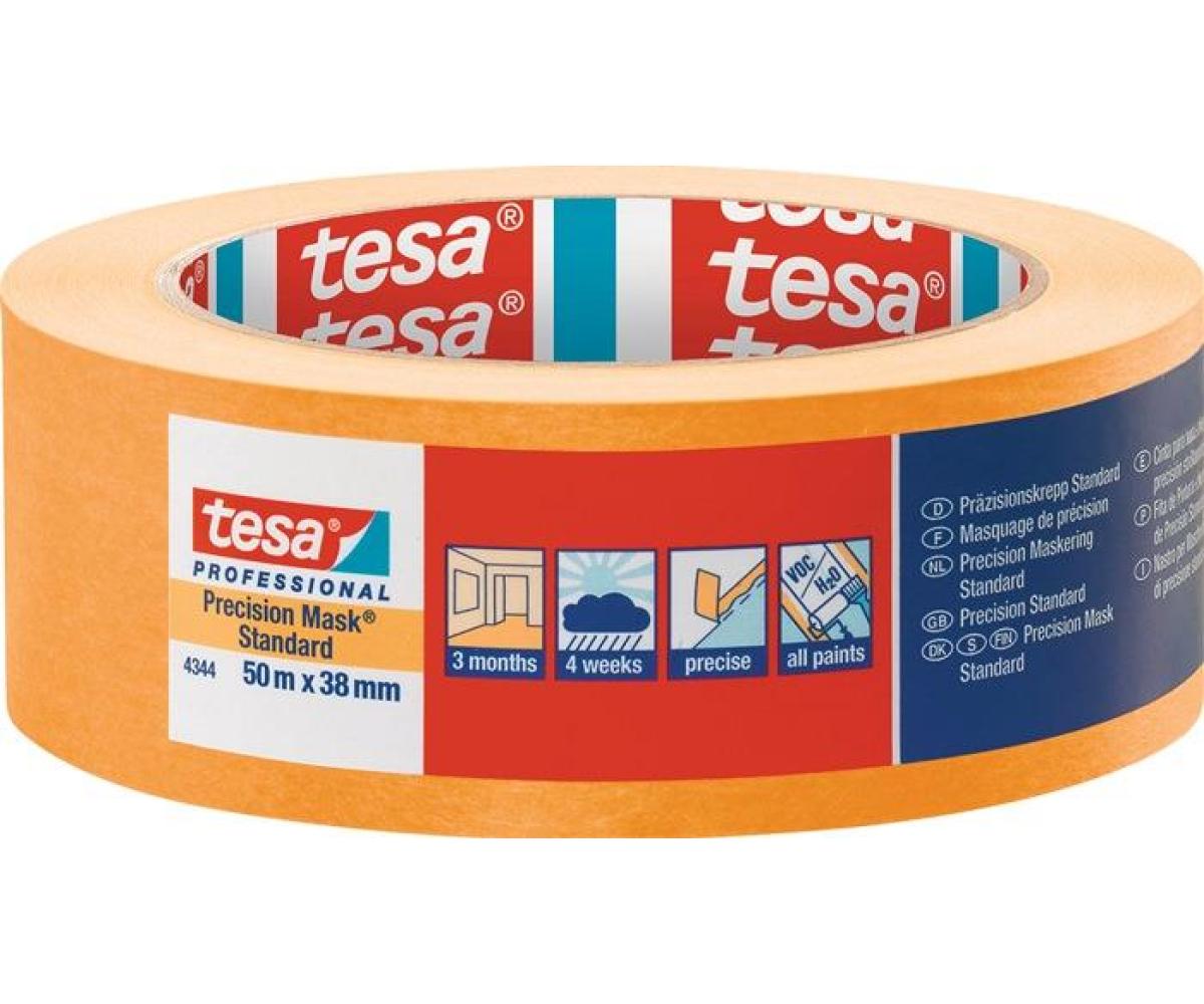 Weitere technische Eigenschaften · Farbe: hellbeige · Gesamtdicke: 0,09mm · Reißkraft: 30N/cm · Klebkraft: 1,7N/cm · Präzisionskrepp 4344 · Stand.glatt hellbeige · L.50m B.38mm Rl.TESA ·