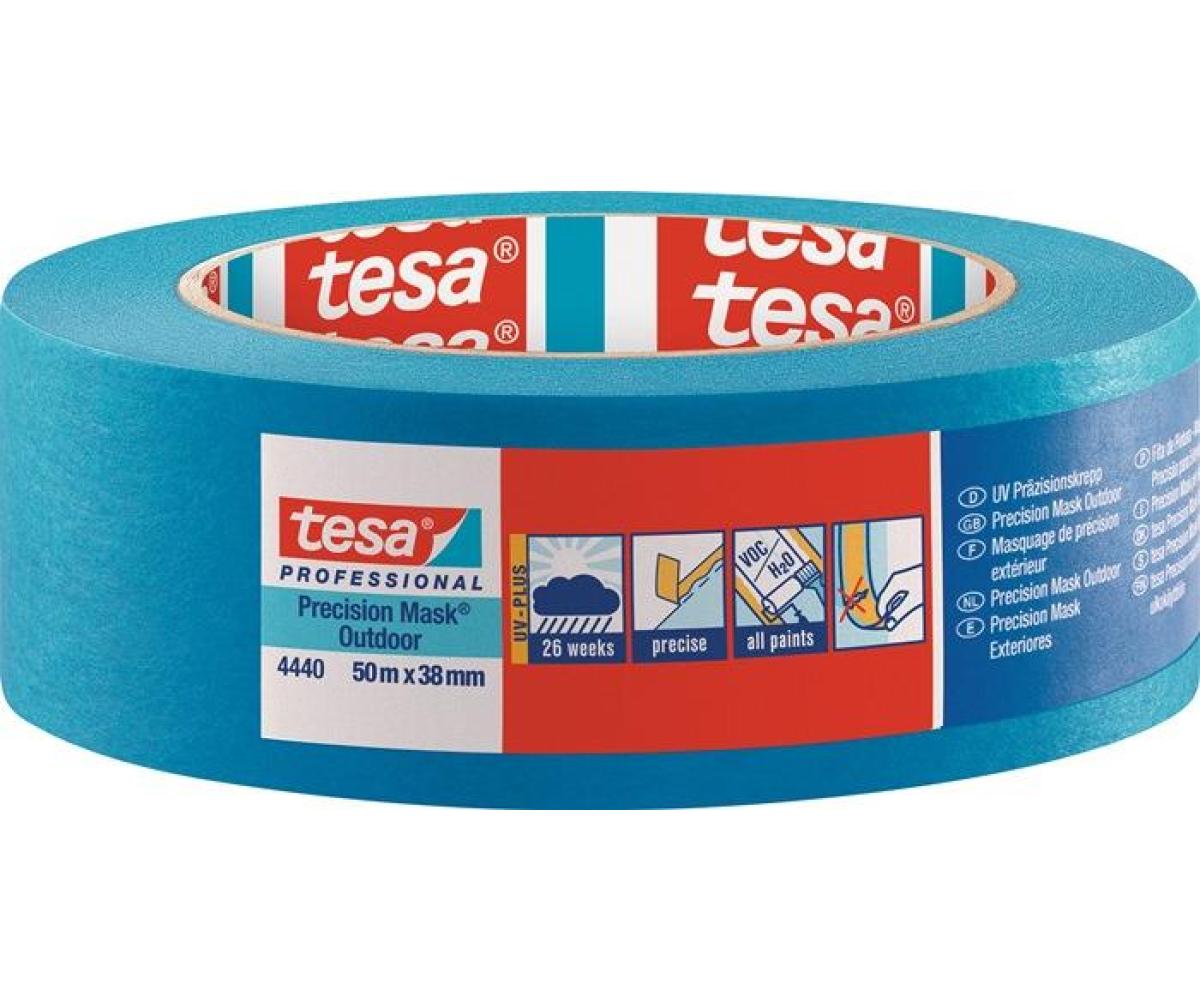 Weitere technische Eigenschaften · Farbe: blau · Gesamtdicke: 0,11mm · Reißkraft: 35N/cm · Klebkraft: 1,8N/cm · Präzisionskrepp 4440 · Außen UV PLUS glatt blau · L.50m B.38mm Rl.TESA ·
