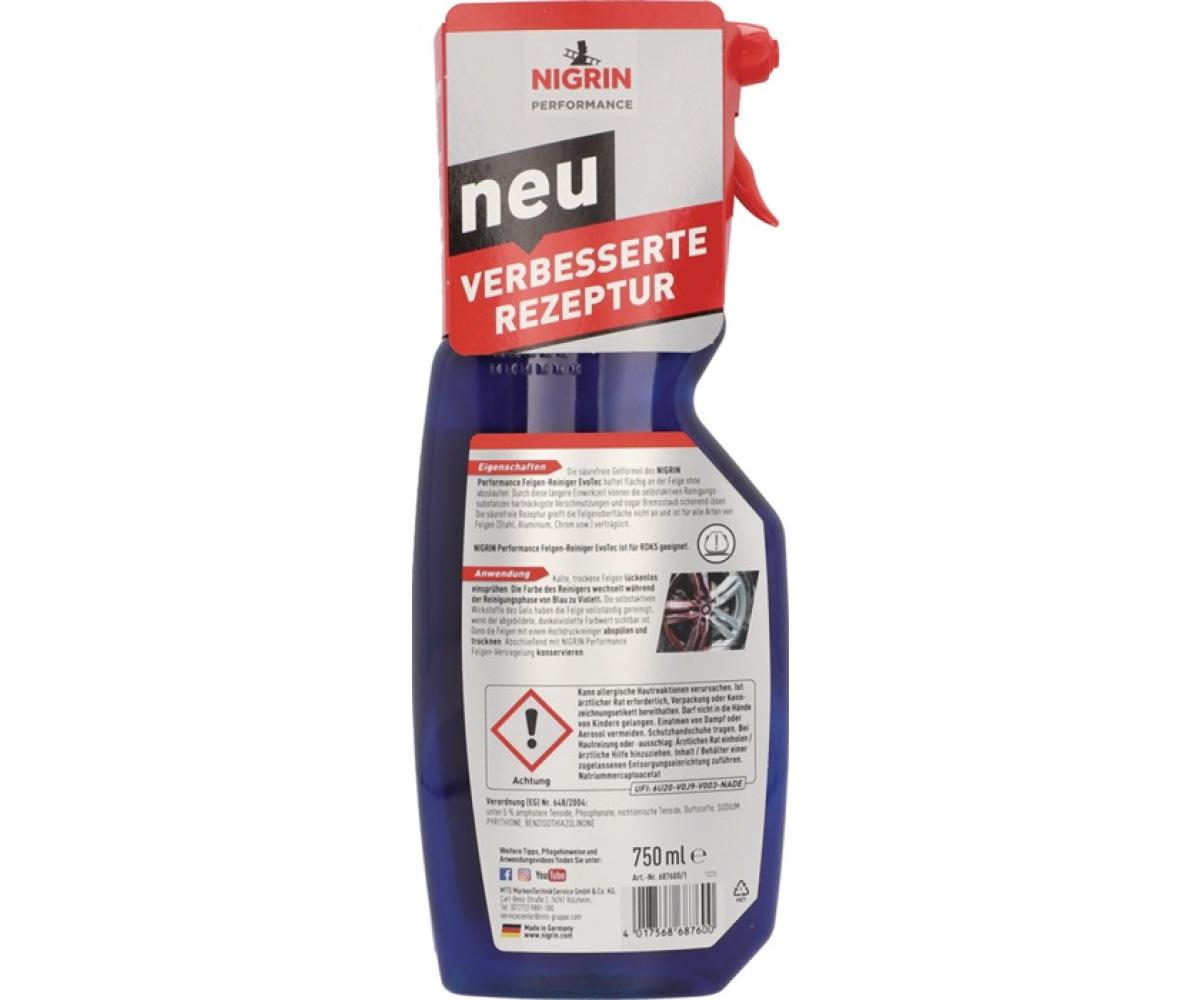 Weitere technische Eigenschaften · Inhalt: 750ml · Felgen-Reiniger EvoTec · Performance 750ml · Sprühflasche NIGRIN ·