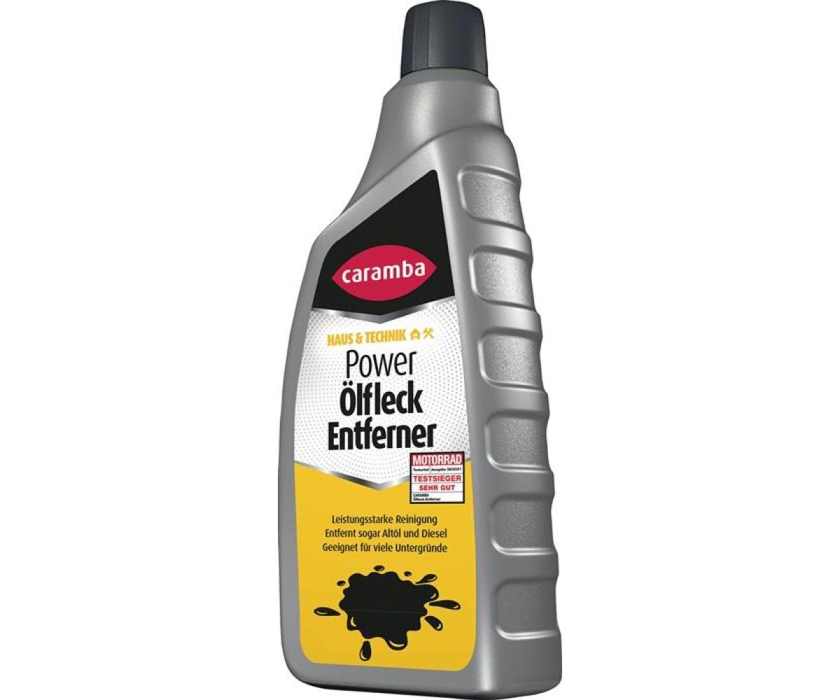 Weitere technische Eigenschaften · Gebinde: Flasche · Ölfleckentferner Power · 1000ml Flasche CARAMBA · Hinweis: Nicht anwenden auf Bitumen, Asphalt und Schiefer ·