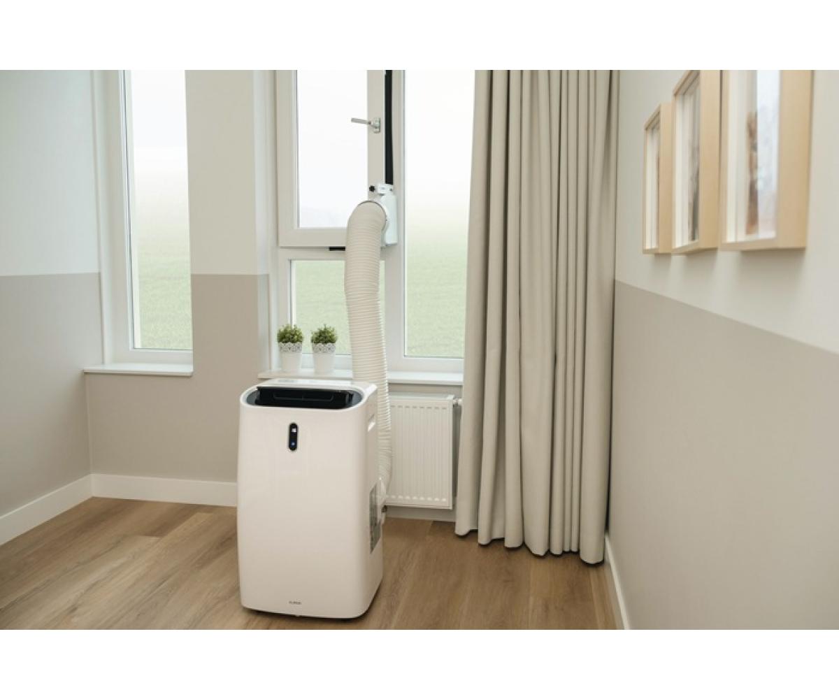 für die Entlüftung von mobilen Klimageräten · zum Absaugen warmer Luft · mit den 3 mitgelieferten Schaumstoffstücken fixiert · geeignet für Klimageräte bis zu 18.000 BTU / 5275 W