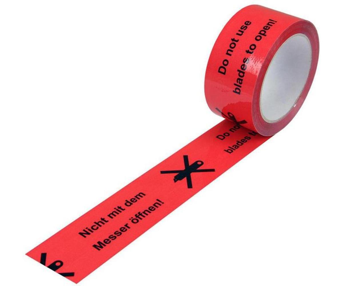Weitere technische Eigenschaften · Material: PP · Länge: 66m · Breite innen: 50mm · Gewicht VE: 7,16kg · Länge innen: 66m · Stärke: 55µ · Warnklebeband Breite 50mm · Länge 66m S.52µ PP rot A · ufdruck Messersymbol TRAN ·
