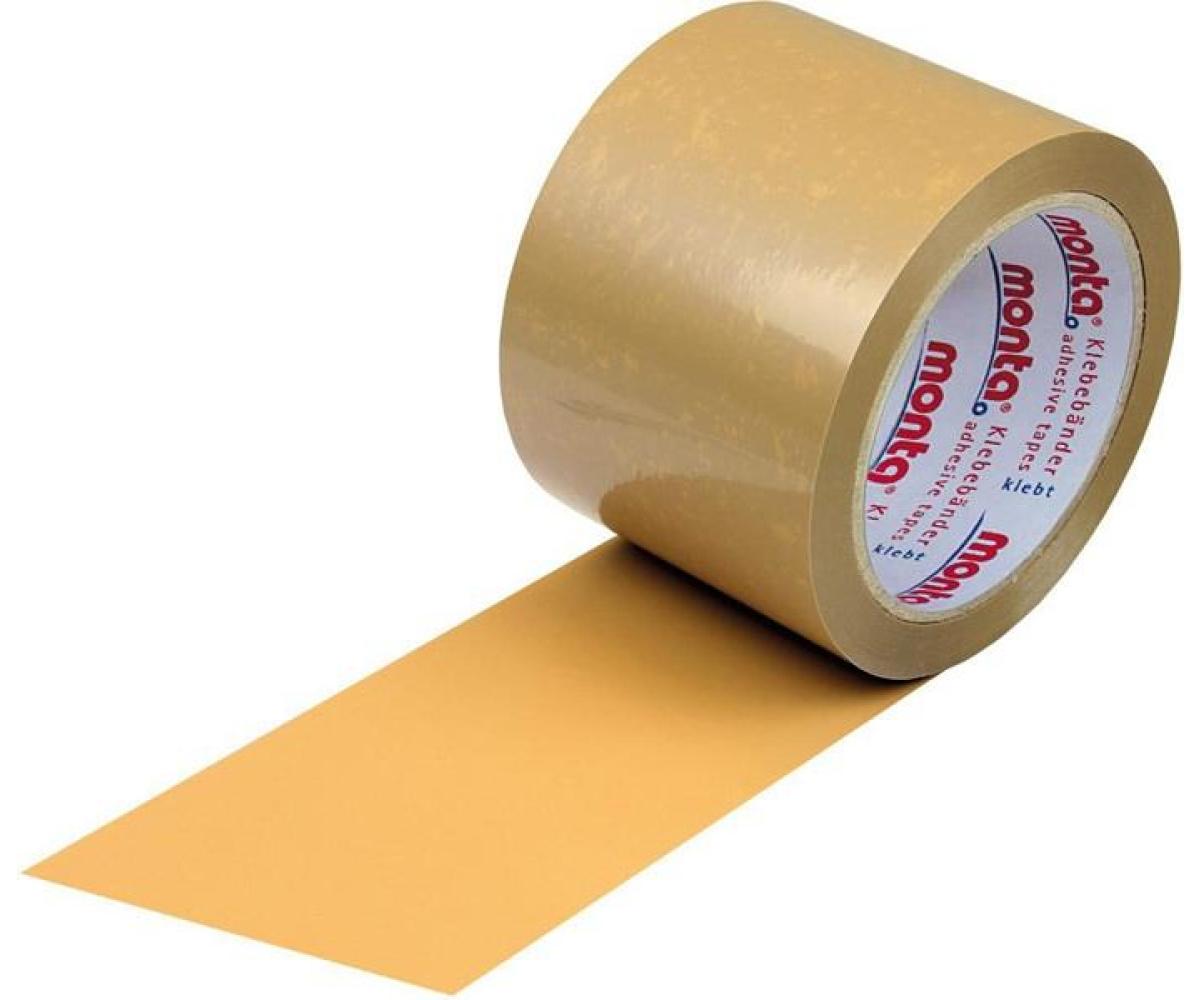 Weitere technische Eigenschaften · Trägerart: pvc · Klebmasse: naturkautschuk · Breite innen: 75mm · Gewicht VE: 8,58kg · Länge innen: 66m · Material: PVC · Stärke: 54µ · Klebeband monta 281 Breit · e 75mm Länge 66m Stärke 5 · 4µ PVC braun leise TRANSP ·