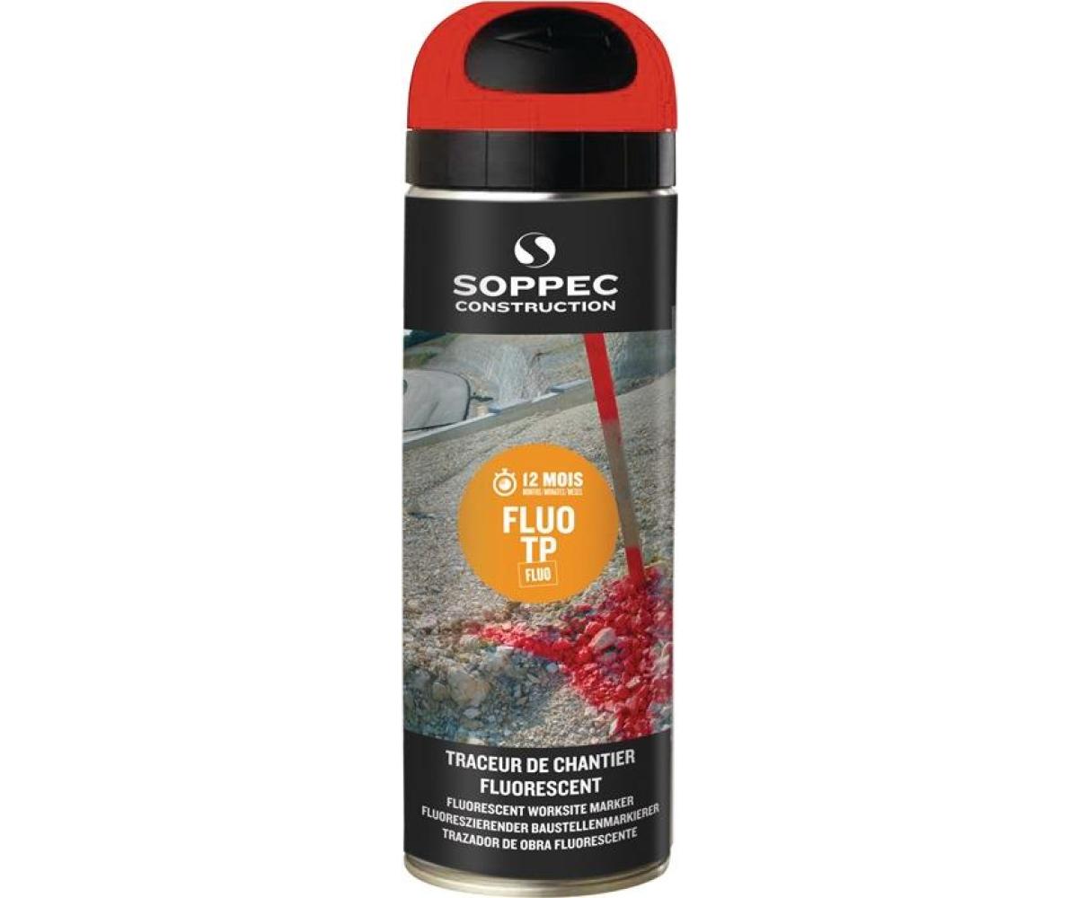 Baustellenmarkierspray · FLUO TP neonrot 500ml · Spraydose SOPPEC ·