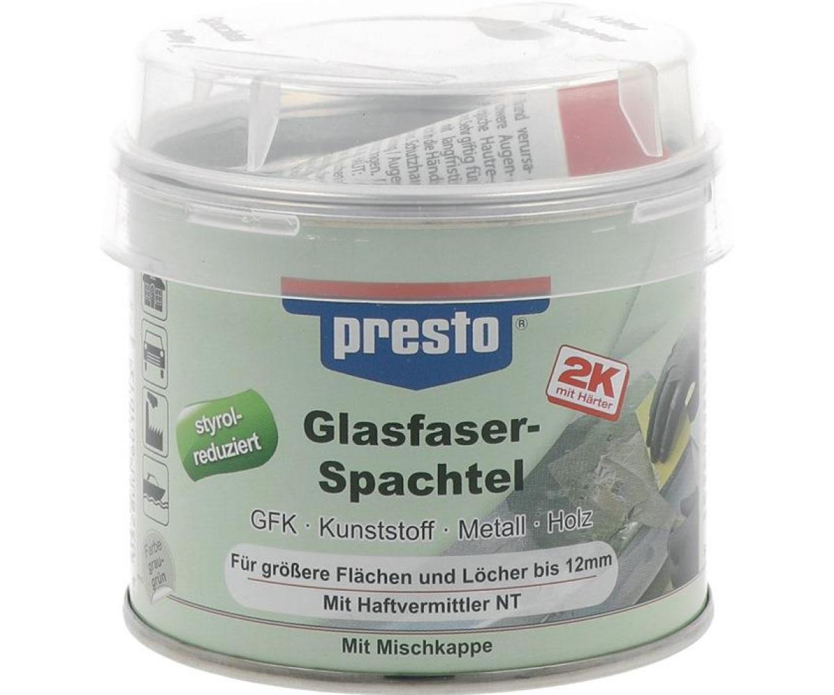 2K-Glasfaserspachtel · grau-grün,Härter rot 250g · Dose PRESTO ·
