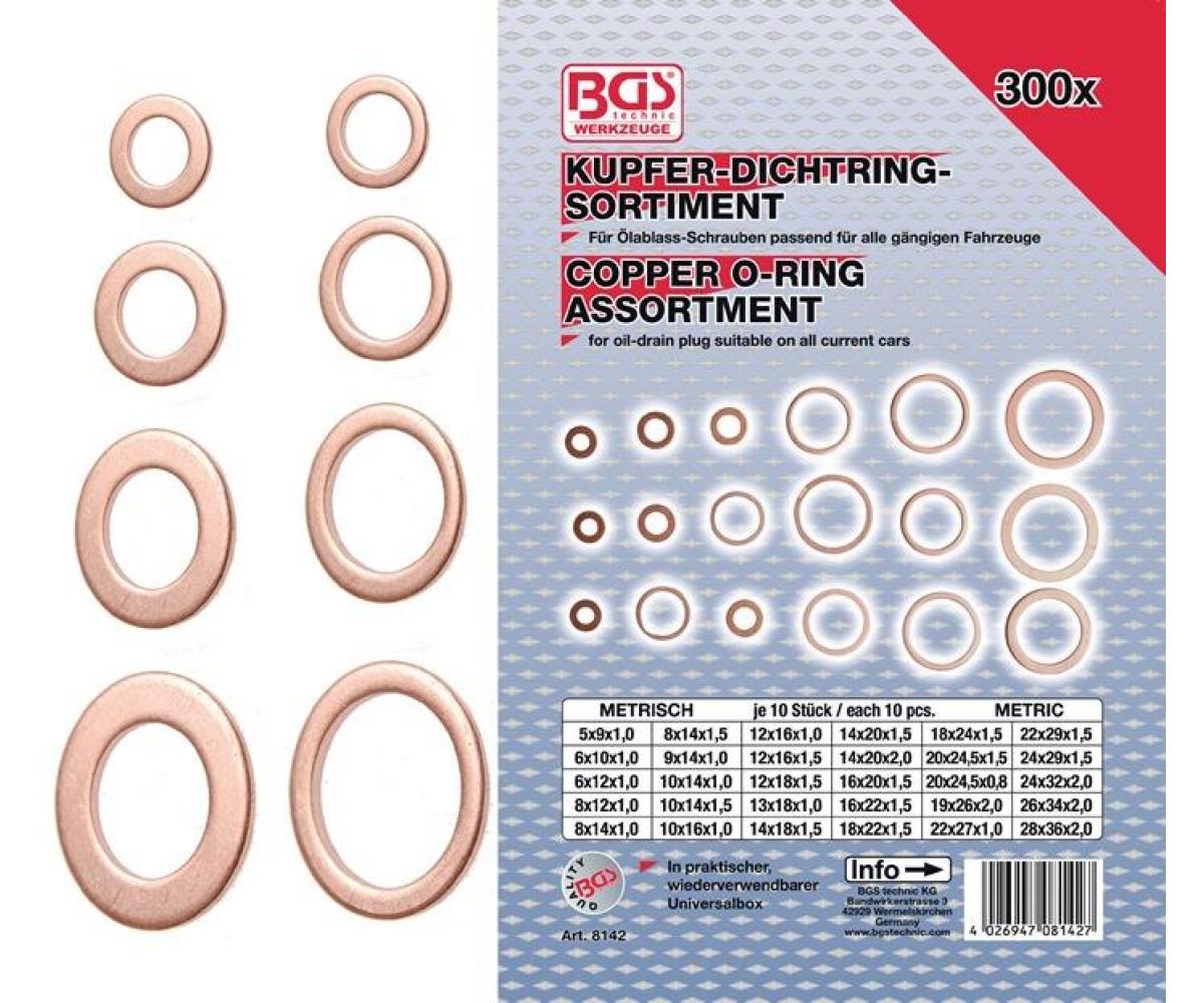 Kupfer · für Öl-Ablassschrauben · passend für alle gängigen Fahrzeuge · je 10 Stück in den folgenden Größen Innen x Aussendurchmesser x Stärke: 5 x 9 x 1,0 mm / 6 x 10 x 1,0 mm / 6 x 12 x 1,0 mm / 8 x 12 x 1,0 mm / 8 x 14 x 1,0 mm / 8 x 14 x 1,5 mm / 9 x 14 x 1,0 mm / 10 x 14 x 1,0 mm / 10 x 14 x 1,5 mm / 10 x 16 x 1,0 mm / 12 x 16 x 1,0 mm / 12 x 16 x 1,5 mm / 12 x 18 x 1,5 mm / 13 x 18 x 1,0 mm / 14 x 18 x 1,5 mm / 14 x 20 x 1,5 mm / 14 x 20 x 2,0 mm / 16 x 20 x 1,5 mm / 16 x 22 x 1,5 mm / 18 x 22 x 1,5 mm / 18 x 24 x 1,5 mm / 20 x 24,5 x 1,5 mm / 20 x 24,5 x 0,8 mm / 19 x 26 x 2,0 mm / 22 x 27 x 1,5 mm / 22 x 29 x 1,5 mm / 24 x 29 x 1,5 mm / 24 x 32 x 2,0 mm / 26 x 34 x 2,0 mm / 28 x 36 x 2,0 mm