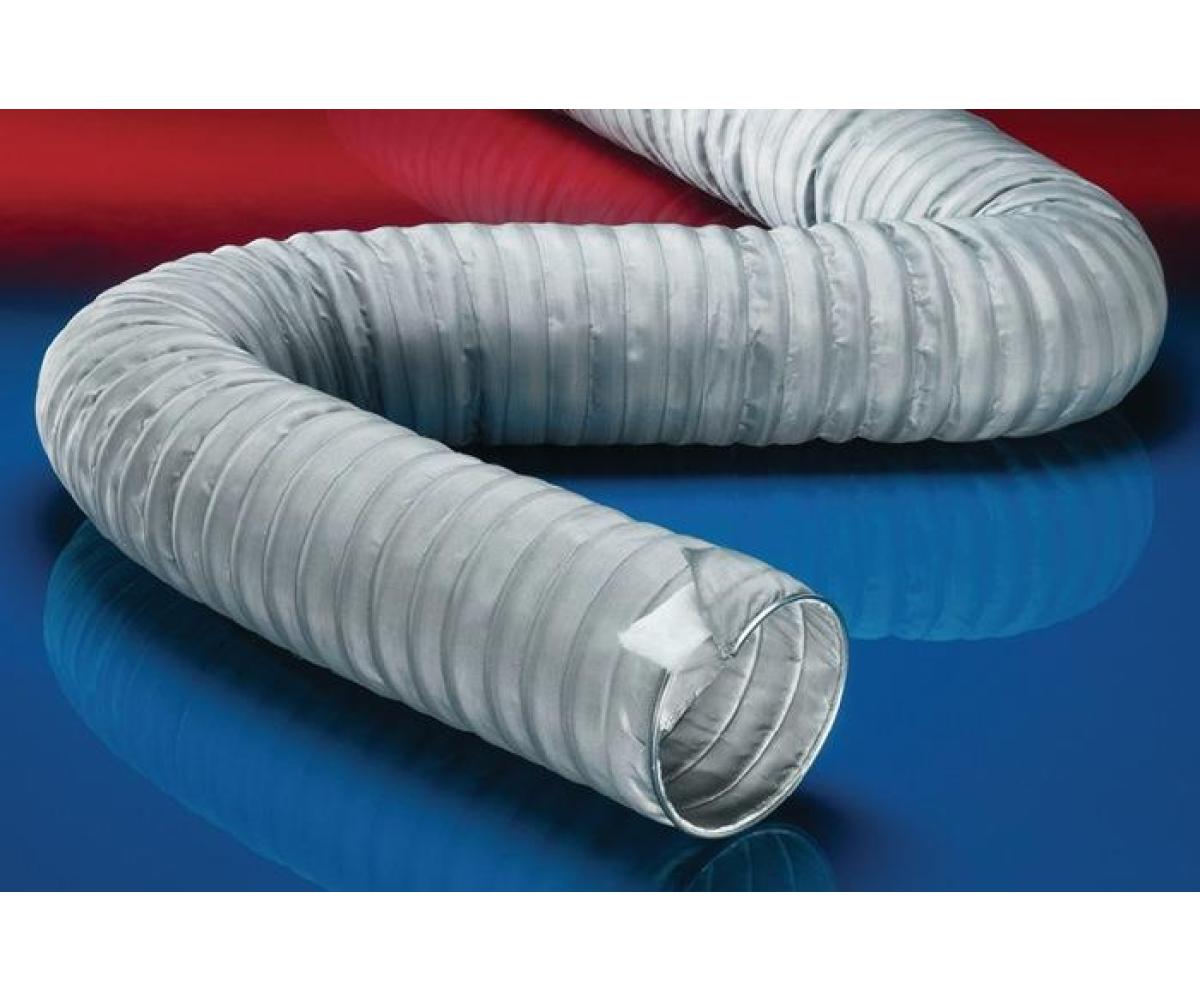 Anwendungen: flexibler Schlauch für heiße und kalte Gase, Abgasabsaugung, Absaugung von Motorabgasen: Abgasschlauchaufroller, Saugschlitzkanal, Überflurabsauganlage, Unterflurabsauganlage, Motorprüfstand, Abgasmessung, Hochtemperaturabsaugung: Ofen, Gießerei, Hochofen, Schmelze, Keramikindustrie, Glasindustrie, Stahlwerk, Aluminiumhütte, Faltenbalg, Kompensator Eigenschaften: sehr gut bei Funkenflug und Schweißspritzern, zugfeste Verklemmung der Wandung im Klemmprofil, isolierend, geeignet für leichten Überdruck, sehr gut hitzebeständig, RoHS konform Konstruktion: 1. Klemmprofil-Stützwendel: Stahl verzinkt, 2. mehrlagige Schlauchwandung, Wandung: innen und außen spezialbeschichtetes Glasgewebe, Thermo Isolationsgewebe, 3. spezielle Thermo-Isolationsschicht Temperaturbereich: -60°C bis 650°C, kurzzeitig bis 700°C Liefervarianten: weitere Ausführungen, Abmessungen und Längen auf Anfrage lieferbar