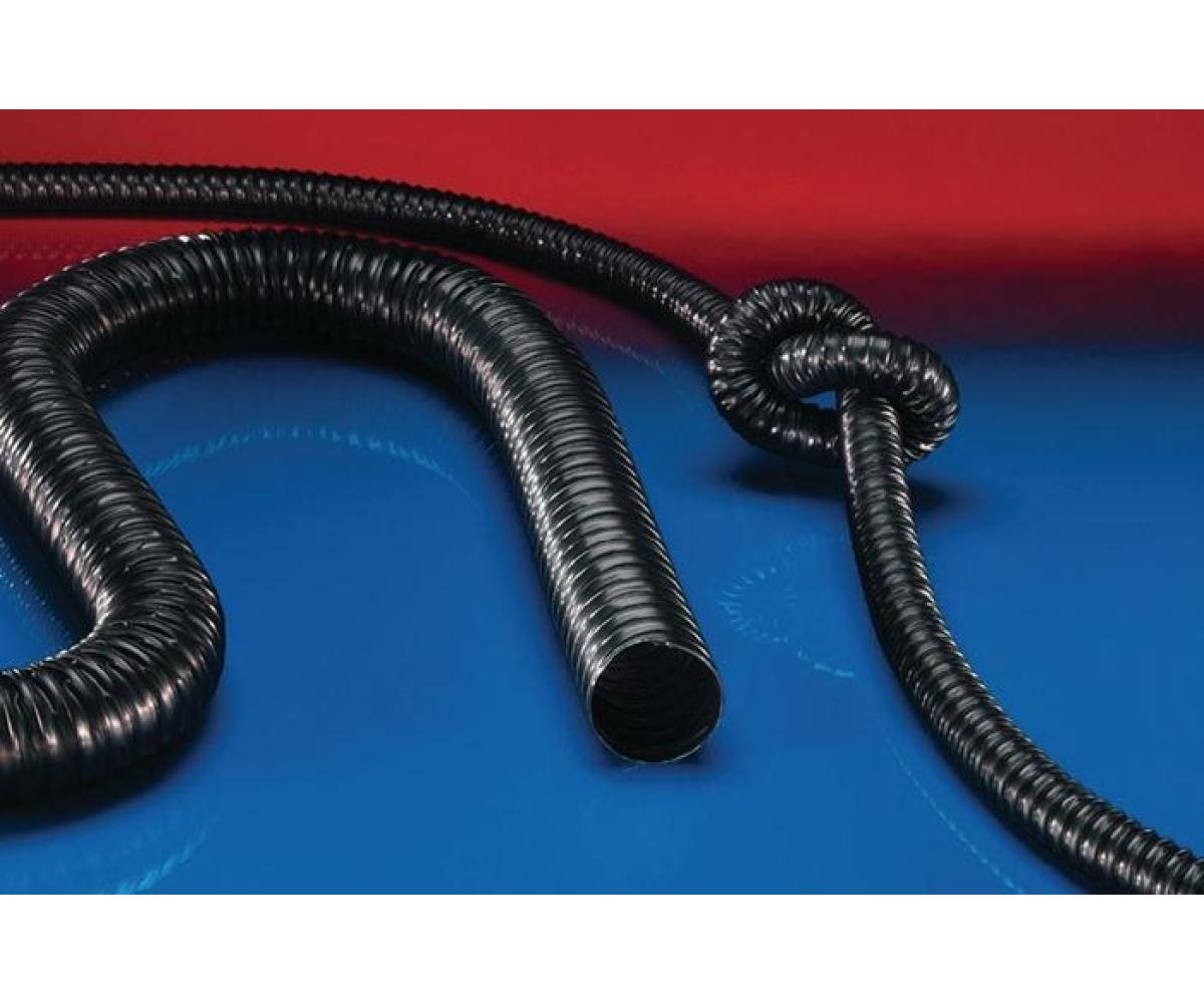 Anwendungen: flexibler Schlauch für Gase und für Stäube, Pulver, Fasern, Absaugarm, Galvanik Absaugung, Chemieindustrie: Chemiedämpfe, Gaspendelschlauch an Verladearm, Farbdämpfe, Farbnebelabsaugung, explosionsgefährdeter Bereich, Bergwerk, Mine, Tunnelbau: Bewetterung, Methangas-Absaugung Eigenschaften: leichte Ausführung, hochflexibel + stauchbar, gute Laugen- und Säurenbeständigkeit, extrem gute Chemikalienbeständigkeit, Wandung elektrisch leitfähig: Durchgangswiderstand und Oberflächenwiderstand Konstruktion: 1. in der Wandung eingebetteter Federstahldraht, 2. Wandung: elektrisch leitfähiges Polyethylen (PE), 3. Wandstärke ca. 0,4 mm Temperaturbereich: -35 bis +80 °C Liefervarianten: weitere Ausführungen, Abmessungen und Längen auf Anfrage lieferbar