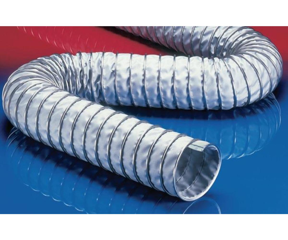 Anwendungen: flexibler Schlauch für heiße und kalte Gase, Abgasabsaugung, Absaugung von Motorabgasen: Abgasschlauchaufroller, Saugschlitzkanäle, Überflur-/ Unterflurabsauganlagen, Motorenprüfstände, Abgasmessung, Hochtemperaturabsaugung: Öfen, Gießereien, Hochöfen, Schmelzen, Keramikindustrie, Glasindustrie, Stahlwerke, Aluminiumhütten, Faltenbalg, Kompensator Eigenschaften: sehr gut bei Funkenflug und Schweißspritzern, Scheuerschutz durch äußeres Klemmprofil, zugfeste Verklemmung der Wandung im Klemmprofil, sehr gut hitzebeständig, schwerentflammbar nach: DIN 4102-B1, RoHS konform Konstruktion: 1. Klemmprofil-Stützwendel: komplett Edelstahl (INOX), 2. zweilagige Wandung, Wandung: innen und außen mit Edelstahldrähten armiertes und spezialbeschichtetes Glasgewebe Temperaturbereich: -60 °C bis 600 °C, kurzzeitig bis 700 °C Liefervarianten: weitere Ausführungen, Abmessungen und Längen auf Anfrage lieferbar