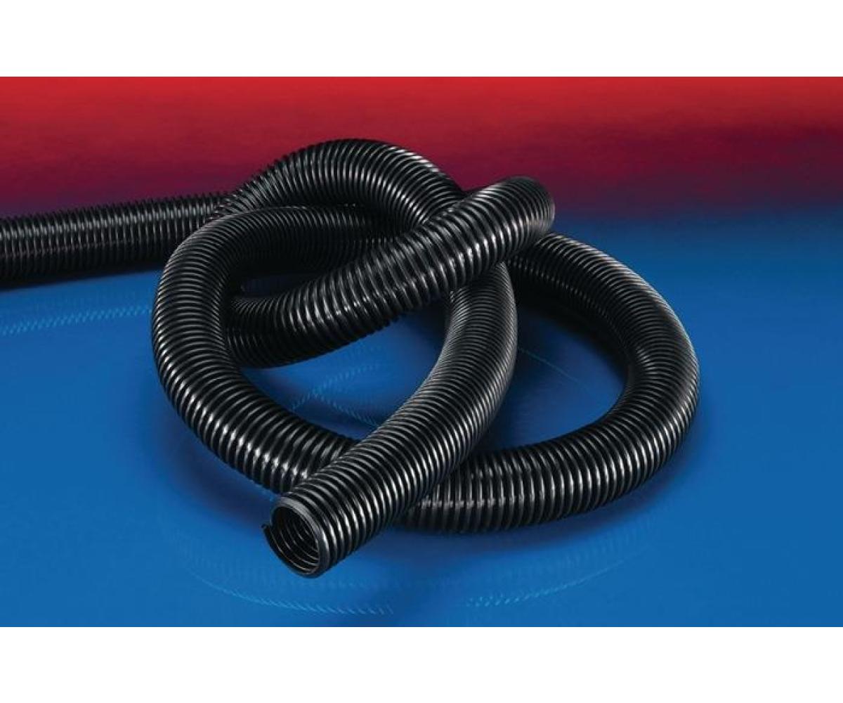 Anwendungen: flexibler Schlauch für Gase und für Stäube, Pulver, Fasern, Industriesauger, Staubsauger, explosionsgefährdeter Bereich, Schwimmbadreinigung, Scheuersaugmaschine, Bodenreinigungsmaschine Eigenschaften: leichte Ausführung, hochflexibel, überfahrbar + trittfest, schwimmfähig, gute Laugen- und Säurenbeständigkeit, Oberflächenwiderstand Konstruktion: 1. selbsttragende Profilkonstruktion, 2. o?ene Profilgeometrie, Wandung: EVA Temperaturbereich: -25 °C bis 65 °C Liefervarianten: weitere Ausführungen, Abmessungen und Längen auf Anfrage lieferbar