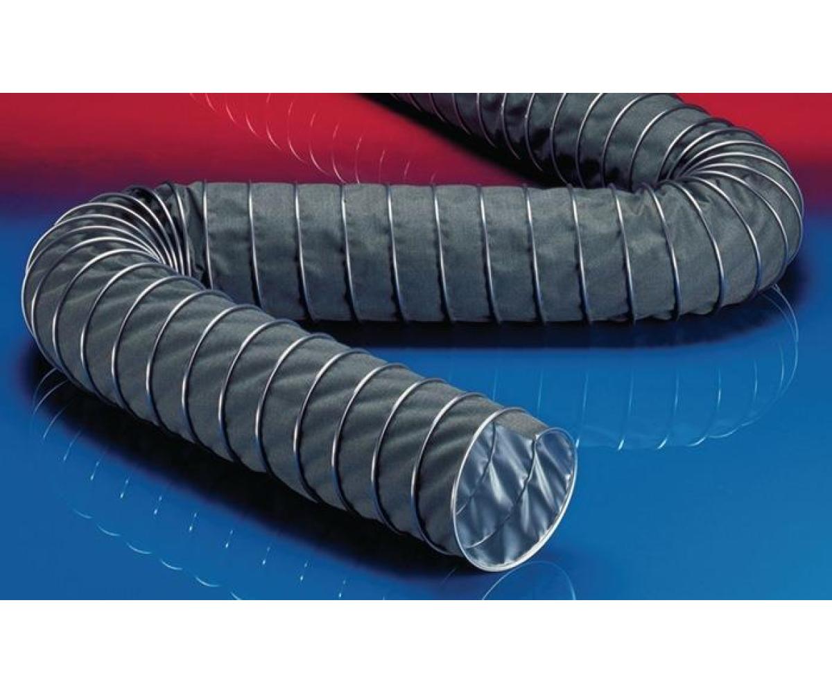Klemmprofilschlauch, vibrationsfest (bis +300°C) Anwendungen: · flexibler Schlauch für heiße und kalte Gase und für Stäube, Pulver, Fasern · Abgasabsaugung, Absaugung von Motorabgasen: Abgasschlauchaufroller, Saugschlitzkanal, Überflurabsauganlage, Unterflurabsauganlage · Hochtemperaturabsaugung: Ofen, Gießerei, Hochofen, Schmelze, Keramikindustrie, Glasindustrie, Stahlwerk, Aluminiumhütte · Faltenbalg, Kompensator Eigenschaften: Scheuerschutz durch äußeres Klemmprofil · zugfeste Verklemmung der Wandung im Klemmprofil · hochflexibel + stauchbar 4:1 · vibrationsfest · sehr gut hitzebeständig · gute Chemikalienbeständigkeit · schwerentflammbar nach: DIN 4102-B1 · Wandung Aramid: Brandschutzklasse "M1" nach UNE 23.727-90 · RoHS konform Temperaturbereich: · -60°C bis 260°C · kurzzeitig bis 300°C