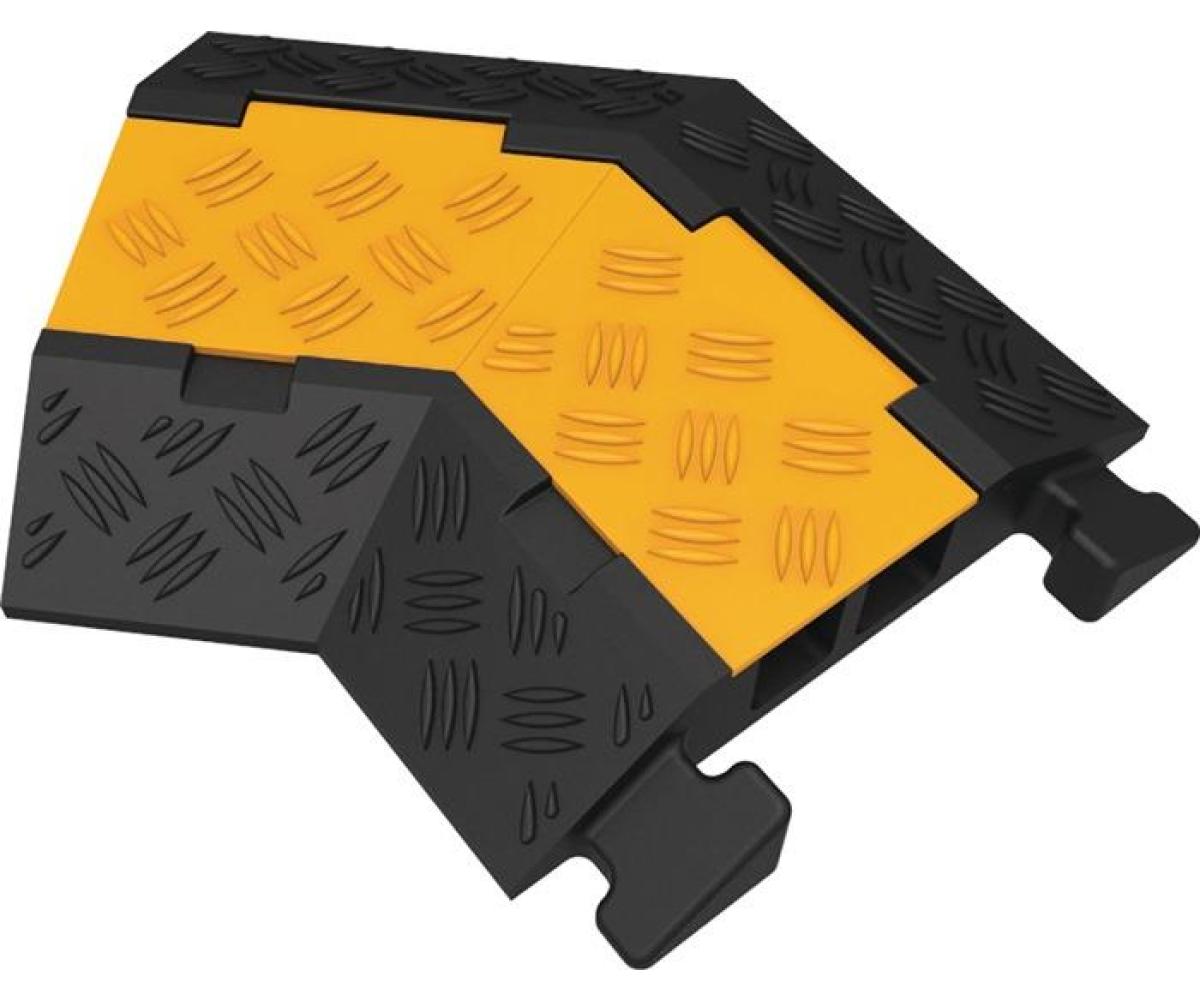 mit zwei Kanälen · zum Schutz von Schläuchen oder Kabeln, die nicht dauerhaft verlegt sind · Abmessung Kabelkanäle H 32 x B 30 mm · keine Befestigung nötig · aus schwarzem vulkanisiertem Vollgummi und rutschhemmende Oberfläche · mit gelben Schutzdeckel und Tragegriff · überfahrbar bis zu einem Achsgewicht von 4 t · Endlosmontage mit Zapfen/Nut-System