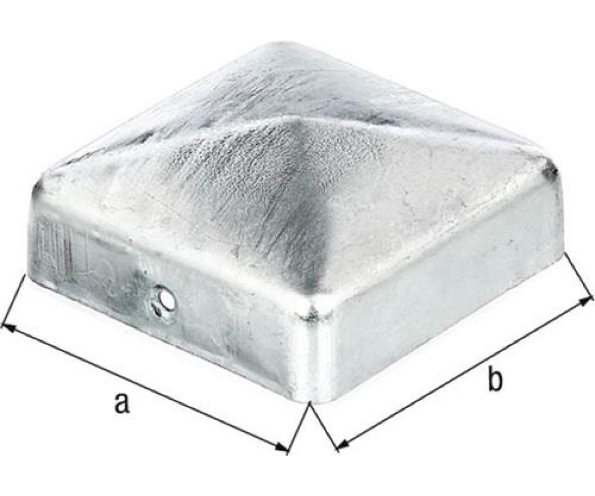 Weitere technische Eigenschaften · Maß a: 90mm · passend für: Holzpfosten · Maß b: 90mm · Pfostenkappe 90x90mm · eck.flache Form VA ma GAH ·
