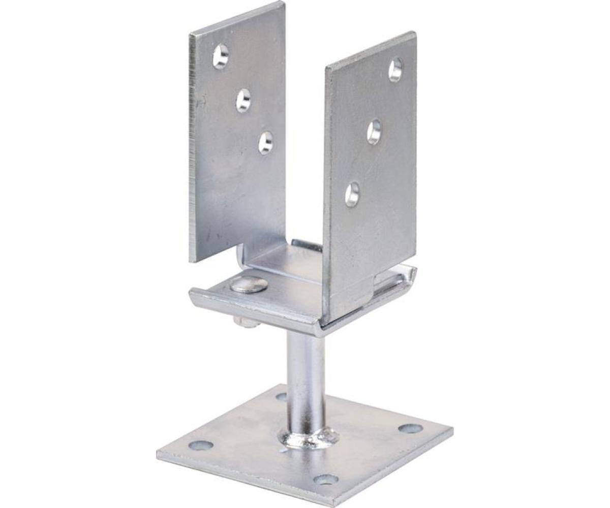 Ausführung: breitenverstellbar · geeignet für Holzpfostenstärken von 71 bis 131 mm · Material: Stahl roh, Oberfläche: galvanisch verzinkt, dickschichtpassiviert