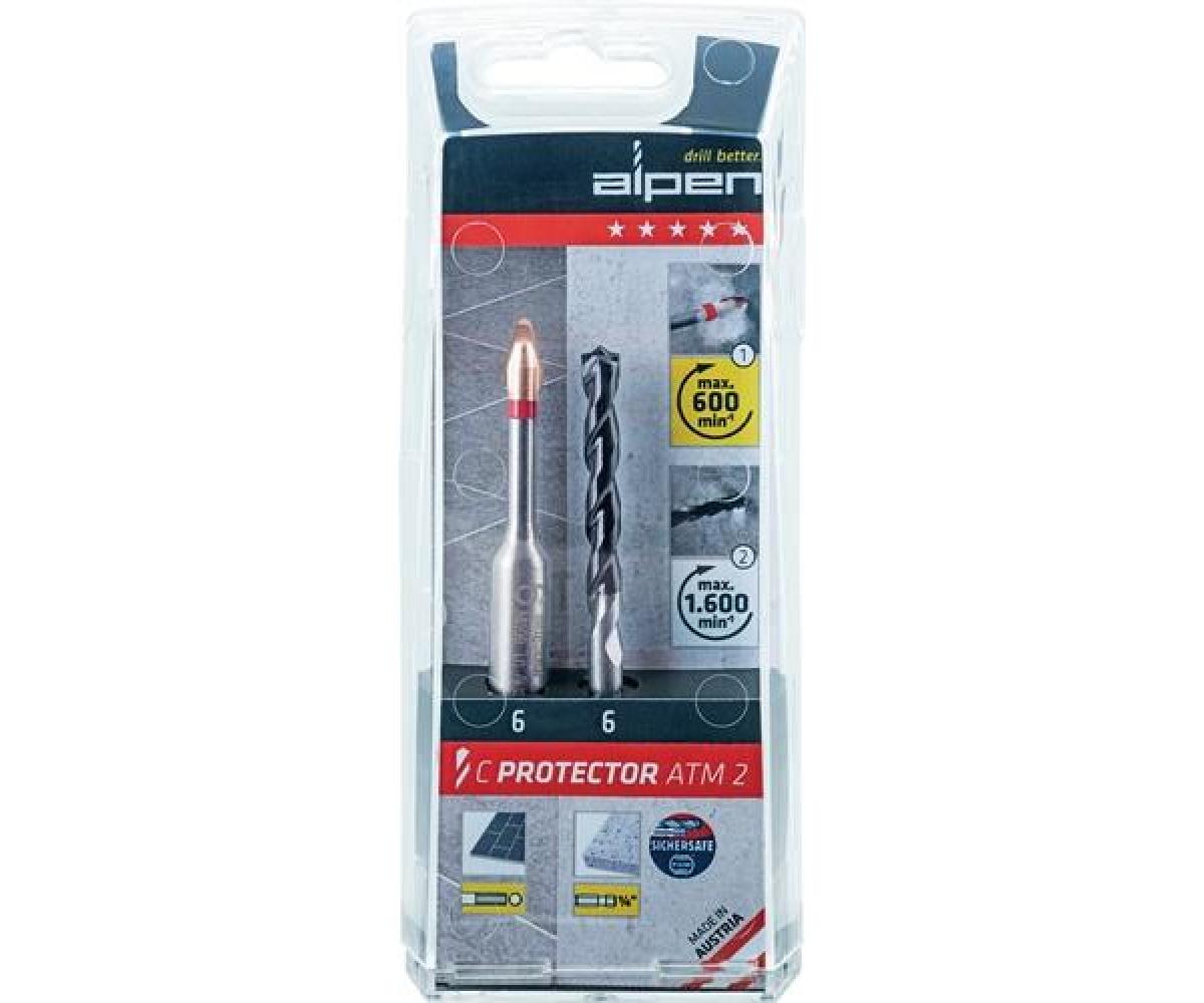 Weitere technische Eigenschaften · Einsatzbereich: Für extrem harte Steinzeugfliesen bis Mohs-/Ritz-Härte 9 sowie Glas und Porzellan. Keine Kühlung erforderlich. Nicht geeignet zum Schlagbohren. · Feinsteinzeugfliesenbohre · rset C PROTECTOR D.8mm 2 · St./Set ALPEN ·