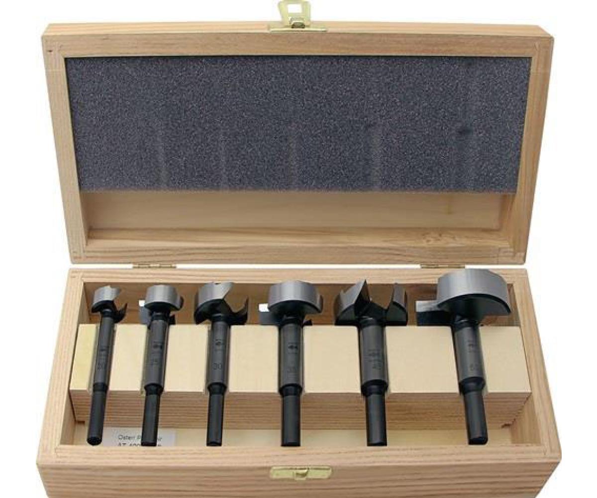 Weitere technische Eigenschaften · Verpackung: in Holzkassette · Schaft-Ø: 8 / 10mm · Forstnerbohrersatz Type · 0317 · 5-tlg.D.15,20,25,30,35mm · Anwendungsbereiche: Zum Bohren ausrissfreier, maßhaltiger Sacklöcher, für Randbohrungen sowie für schräg angesetzte Bohrungen in Weich und Harthölzer, die wellenförmige Rundumschneide verhindert ein Ausglühen der Schneiden, leichtes und kraftarmes Schneiden, durch optimale Schneidgeometrien ·