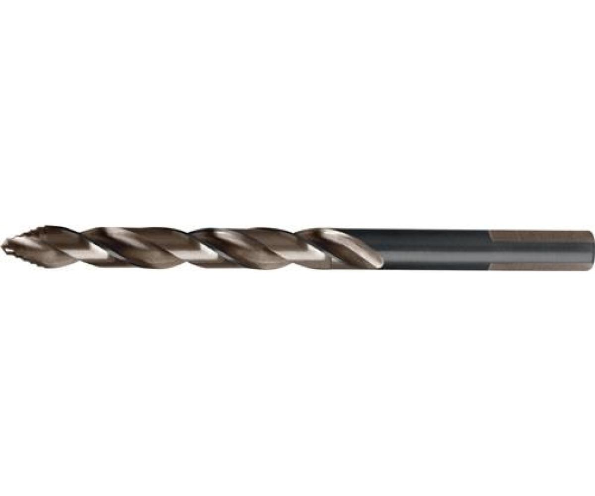 HSS-Co5 · DIN 338 · FLOWSTEP®-Spitze · Spitzenwinkel 118 ° · rechtsschneidend · 3-Flächenschaft · punktgenaues Zentrieren ohne Ankörnen auch auf runden Oberflächen wie z. B. Rohren · extrem schnelles und kräfteschonendes Anbohren · Bohren von großen Durchmessern ohne Vorbohren · leichter und ruhiger Bohrvorgang, ohne verkanten im Material · 3-Flächenschaft verhindert das Durchdrehen im Bohrfutter · optimal geeignet für den Einsatz in handgeführten Elektro-Werkzeugen · für NE-Metalle, Bau- und Kohlenstoffstähle, hochlegierte Stähle (z.B. V2A/V4A), Werkzeugstähle, Magnesiumlegierungen, Kunststoffe sowie Aluminium, Plexiglas und Holz