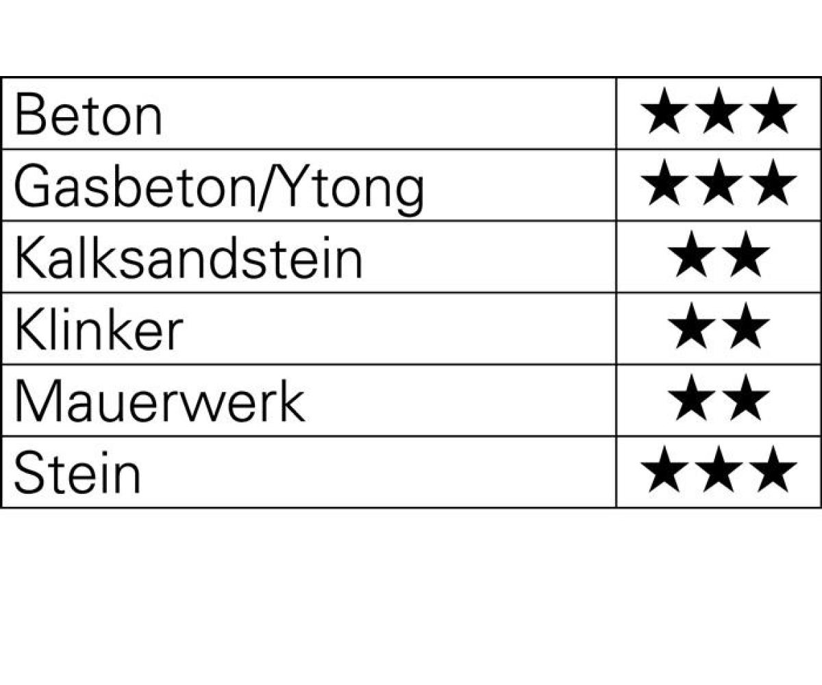 SDS-max · sehr hohe Bohrgeschwindigkeit, da 2-Schneider · spezial gehärtete Oberfläche für erhöhte Bruchfestigkeit beim Hammerbohrbetrieb · zertifiziert durch die Prüfgemeinschaft Mauerbohrer Anwendungsbereiche: Beton, Stein, Mauerwerk, Klinker