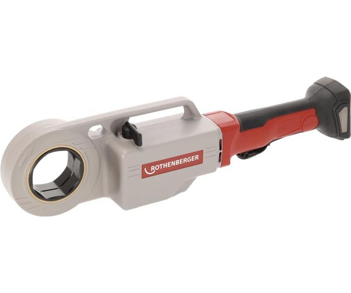 kabellose hand-elektrische Gewindeschneidkluppe zum Anfertigen von Rohrgewinden nach EN 10226 (alt DIN 2999) auf Stahlrohren nach DIN EN 10255 M-H, in den Größen von R1/4" bis 2" · 4-fach schnellerer Rücklauf durch Rücklaufgetriebe · mit Vor- und Rücklauf · fester Sitz der Schneidköpfe durch Direktaufnahme mit Sprengringarretierung · Gewindeschneiden nahe an der Wand durch außermittige Schneidkopfaufnahme · hohes und konstantes Übertragungsmoment bei Volllast · ideal für schwer zugängliche Stellen (Ecken, Schächte) · sicherer Halt in beiden Drehrichtungen durch gehärteten, prismenverzahnten Gegenhalter · wartungsfreundlich dank Dauerschmierung · Bürstenloser Motor für verschleißfreies Arbeiten und lange Lebendsdauer · Akku (System CAS/AMP) Antrieb: für kabelloses Arbeiten und erhöhte elektrische Sicherheit Art.-Nr. 8000 906 643, 8002 983 657: ohne Köpfe, ohne Akku, ohne Ladegerät Art.-Nr. 8000 906 644, 8002 983 658: mit Köpfe BSPT R 1/2" - 2", ohne Akku, ohne Ladegerät