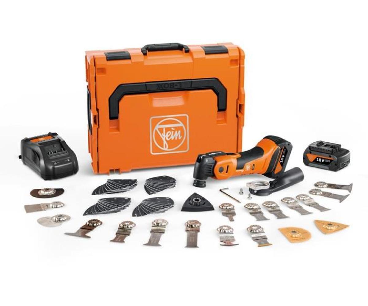 Weitere technische Eigenschaften · Gewicht: 1,1 (ohne Akku)kg · prüfpflichtig: ja · Akku-Kompatibilität: Li-Ionen / ProCORE Li-Ionen · Akku-Schnittstelle: 18 V AMPShare · Vorteile: Anti-Vibrationssystem: Dauerhaft sicheres und angenehmes Arbeiten durch geringste Vibrationen und hervorragende Geräuschdämpfung. Der Akku-Ladestand ist direkt am Akku ablesbar. Die COOLPACK-Technologie sorgt für eine längere Akkulebensdauer und ermöglicht damit längere Betriebszeiten. Electronic Cell Protection (ECP): ECP schützt den Akku vor Überlastung, Überhitzung und Tiefentladung. 18 V FEIN PowerDrive Motor: Besonders leistungsstarker und nahezu verschleißfreier, bürstenloser Motor mit hohem Wirkungsgrad sowie extremer Belastbarkeit und Lebensdauer. QuickIN: Werkzeugwechsel in unter 3 Sekunden durch patentiertes werkzeugloses FEIN Schnellspannsystem. Dank StarlockMax Werkzeugaufnahme haben Sie Zugriff auf rund 180 FEIN Zubehöre der Leistungsklassen Starlock, StarlockPlus und StarlockMax. Für jeden Einsatz bestens gerüstet. Mobiles Arbeiten mit dem L-BOXX System. Metall-Getriebe: Hohe Belastungsfähigkeit und maximale Lebensdauer, da alle Getriebeteile aus Metall gefertigt sind. StarlockMax Werkzeugaufnahme: Mehr Arbeitsfortschritt und höhere Präzision dank 100 % verlustfreier Kraftübertragung. Kompatibel mit AMPShare-/ Bosch Professional 18 V Akkus. Mechanische Schnittstelle: Für stationären Betrieb in der Tisch- oder Bohrständerhalterung oder zu Befestigung des Tiefenanschlags. Tachogenerator: Konstante Drehzahlen auch unter Last und stufenlose elektronische Drehzahlregelung. · Werkzeugwechsel: QuickIN · Akku-MultiMaster AMM 700 · Max Top 4.0Ah AS 18V 4Ah · StarlockMax