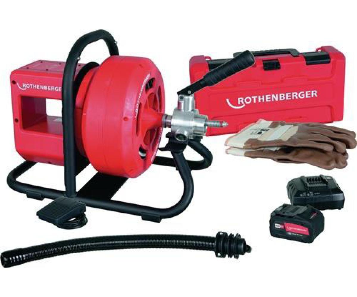 RODRUM VarioClean · akkubasierte Trommelmaschine mit automatischen Vor-und Rücklauf zum Reinigen von Rohren mit Ø 40-100 mm · 10 mm Spiral-Trommel für Arbeitsbereiche von 40 - 70 mm Rohr-Ø, 13 mm Spiral-Trommel für Arbeitsbereiche von 50 - 100 mm Rohr-Ø, CAS-Akku Antrieb für kabelloses Arbeiten und erhöhte elektrische Sicherheit · Elektronik: drei Drehzahlstufen zum Entstopfen, Reinigen und Sauberschleudern · verhindert das lange Nachlaufen der Trommel · DuraFlex Spiralen: besonders flexibele Spiralen mit Verzinkung · wechselbare Spiraltrommel zum werkzeuglosen Anpassen an andere Rohr-Ø · Spiraltrommel zum leichteren Transport abnehmbar · saubere und diskrete Arbeitsweise im Vergleich zu einer Koffermaschine